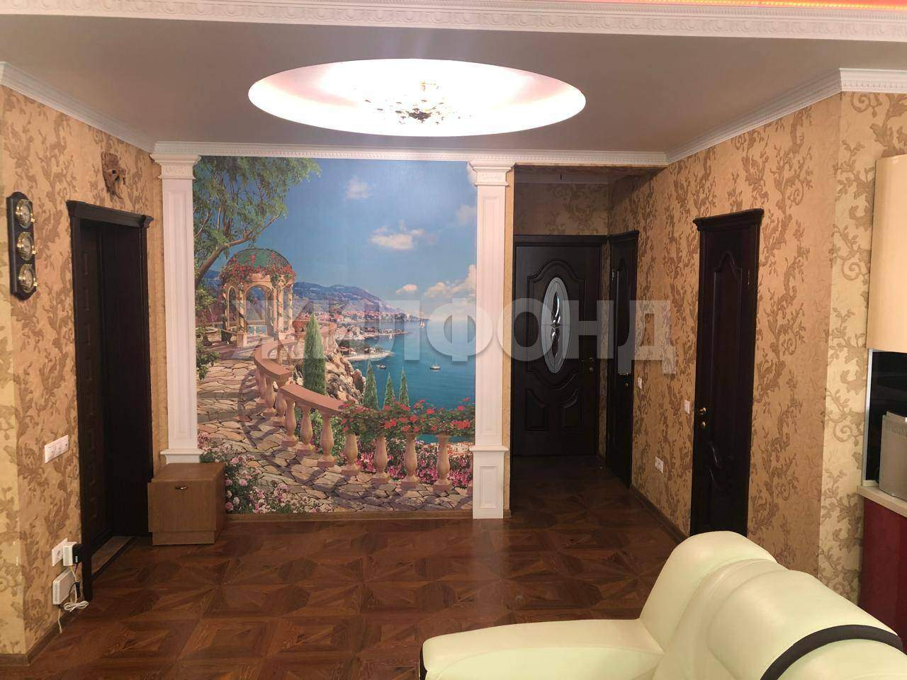 Стилизованный косметический ремонт в мягких пастельных тонах, на полу ламинат, на стенах - обои и под покраску, потолок выровнен и оштукатурен, установлены люстры и точеные светильники. В раздельных ванной комнате и санузле кафель и керамогранит. Установлена душевая кабина.