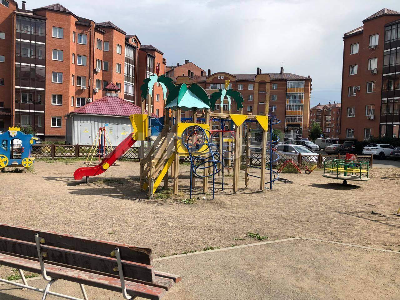 Есть хорошая детская площадка, места для парковки автомобилей.