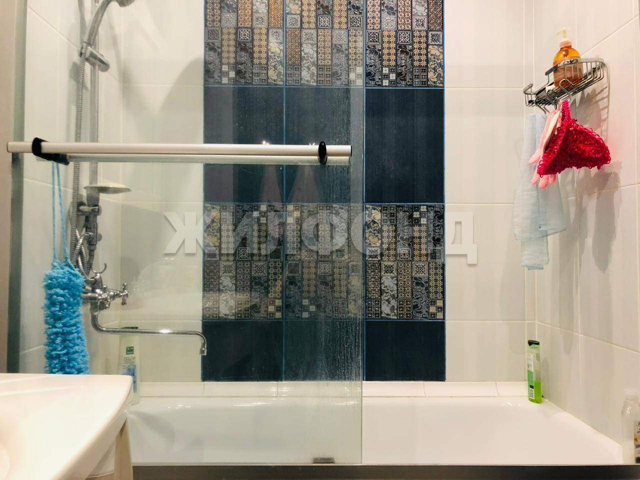 На кухне - оригинальный гарнитур, в ванной и санузле - стильный кафель.