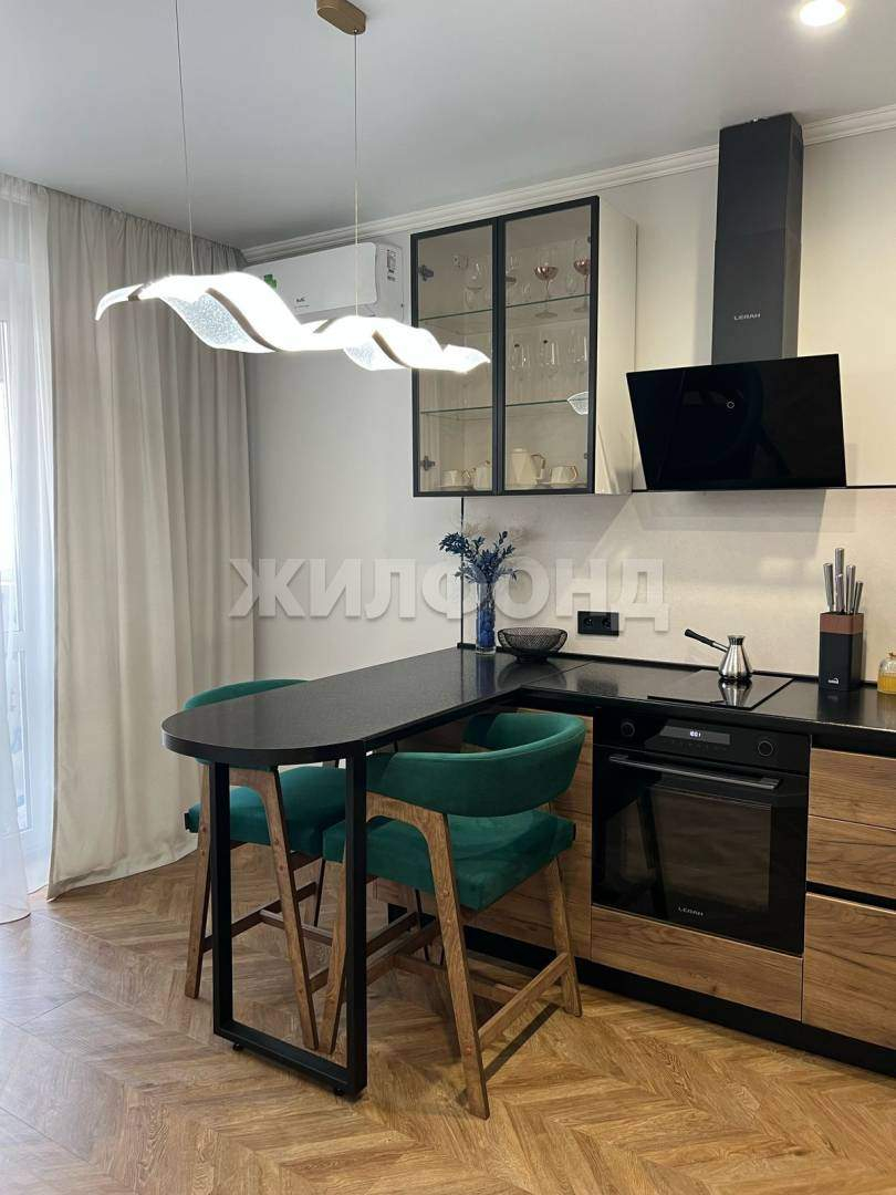 Кухня оборудована всей необходимой техникой- посудомоечная машина, духовой шкаф, индукционная плита, вытяжка, холодильник.