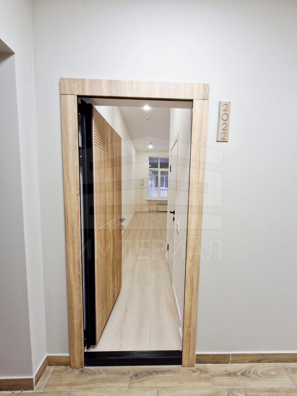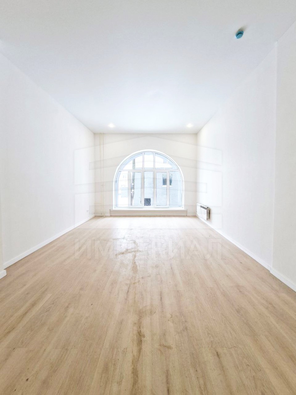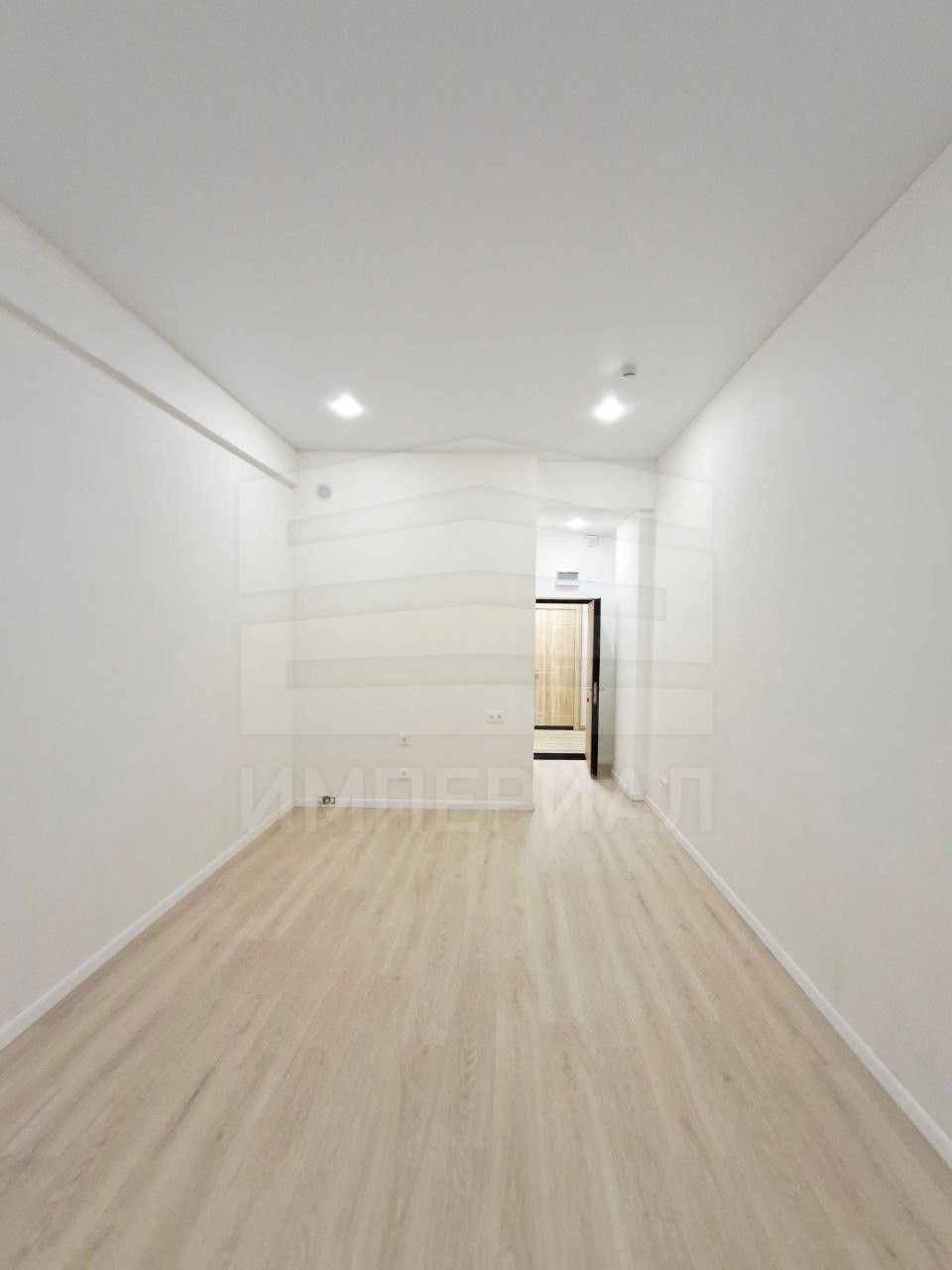 На стенах поклеены обои под покраску, на полу постелен ламинат с плинтусами и откосами. Есть вытяжная вентиляция в санузле и на кухне, выходы хв/гв, место под раковину на кухне. Кроме того, в помещениях уже есть выключатели освещения, розетки для бытовой техники и роутера, а также сделаны закладные для оптоволокна для интернета.