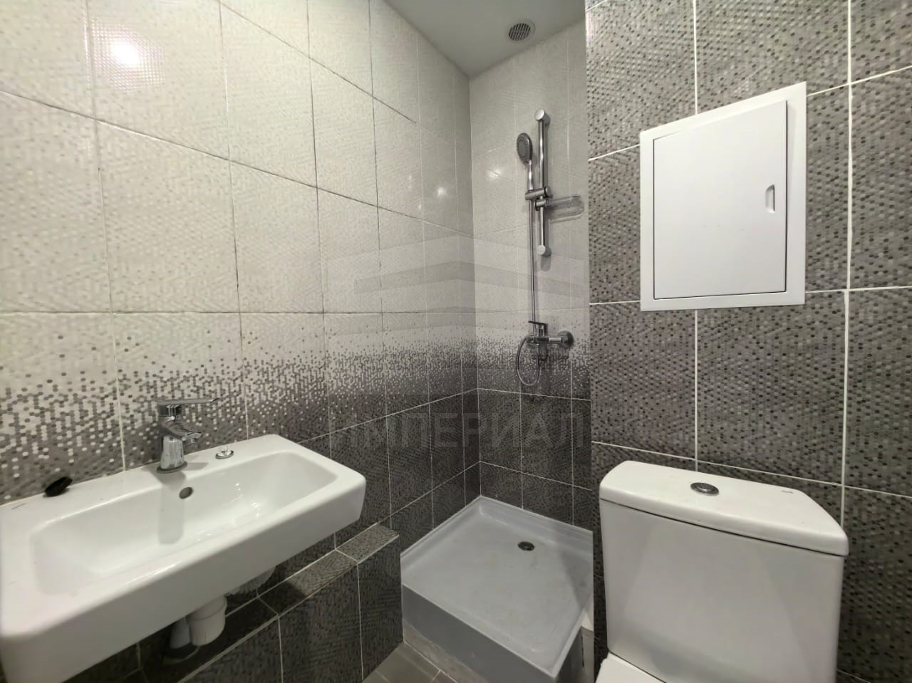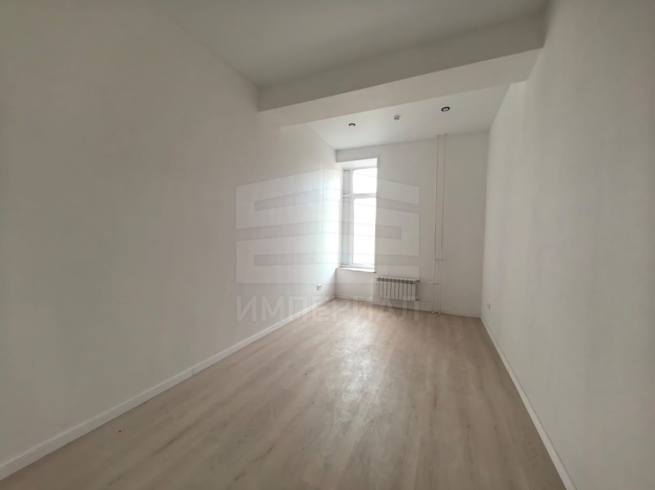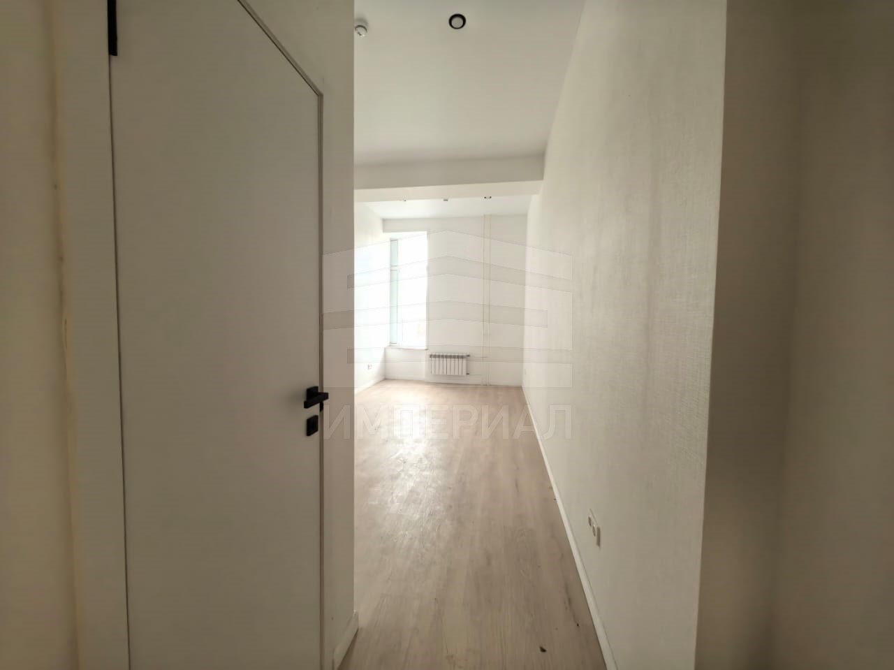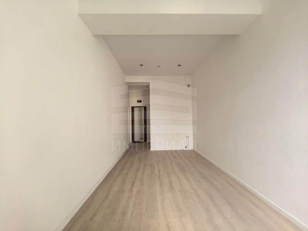 На стенах поклеены обои под покраску, на полу постелен ламинат с плинтусами и откосами. Есть вытяжная вентиляция в санузле и на кухне, выходы хв/гв, место под раковину на кухне. Кроме того, в помещениях уже есть выключатели освещения, розетки для бытовой техники и роутера, а также сделаны закладные для оптоволокна для интернета.