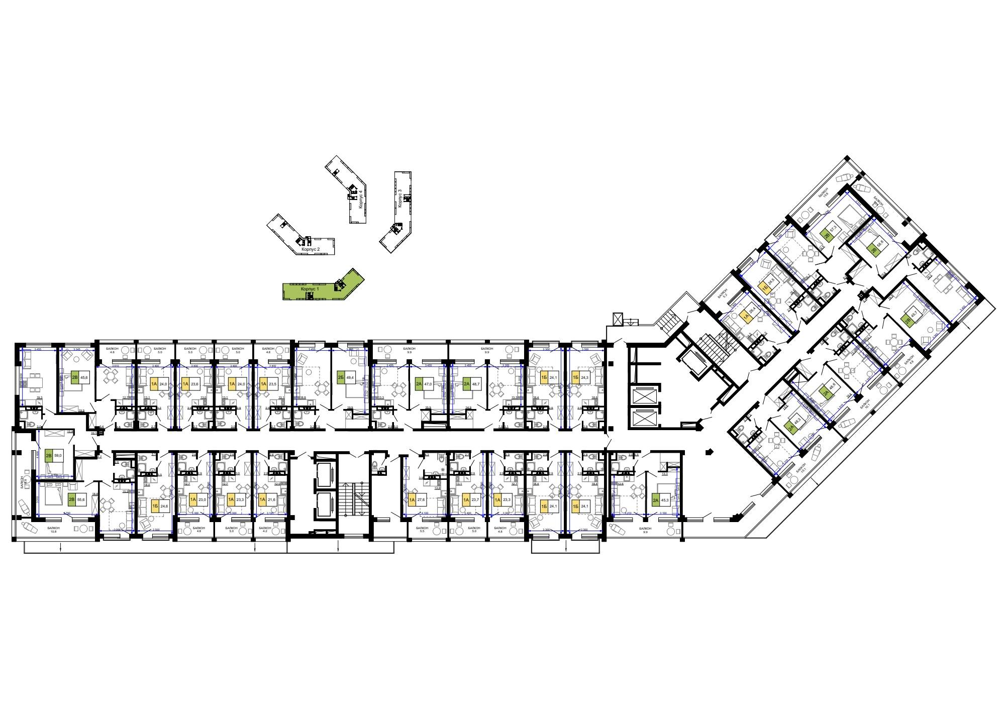 Квартира располагается на 2 этаже 9-этажного дома в ЖК Гостиничный комплекс Мореград.