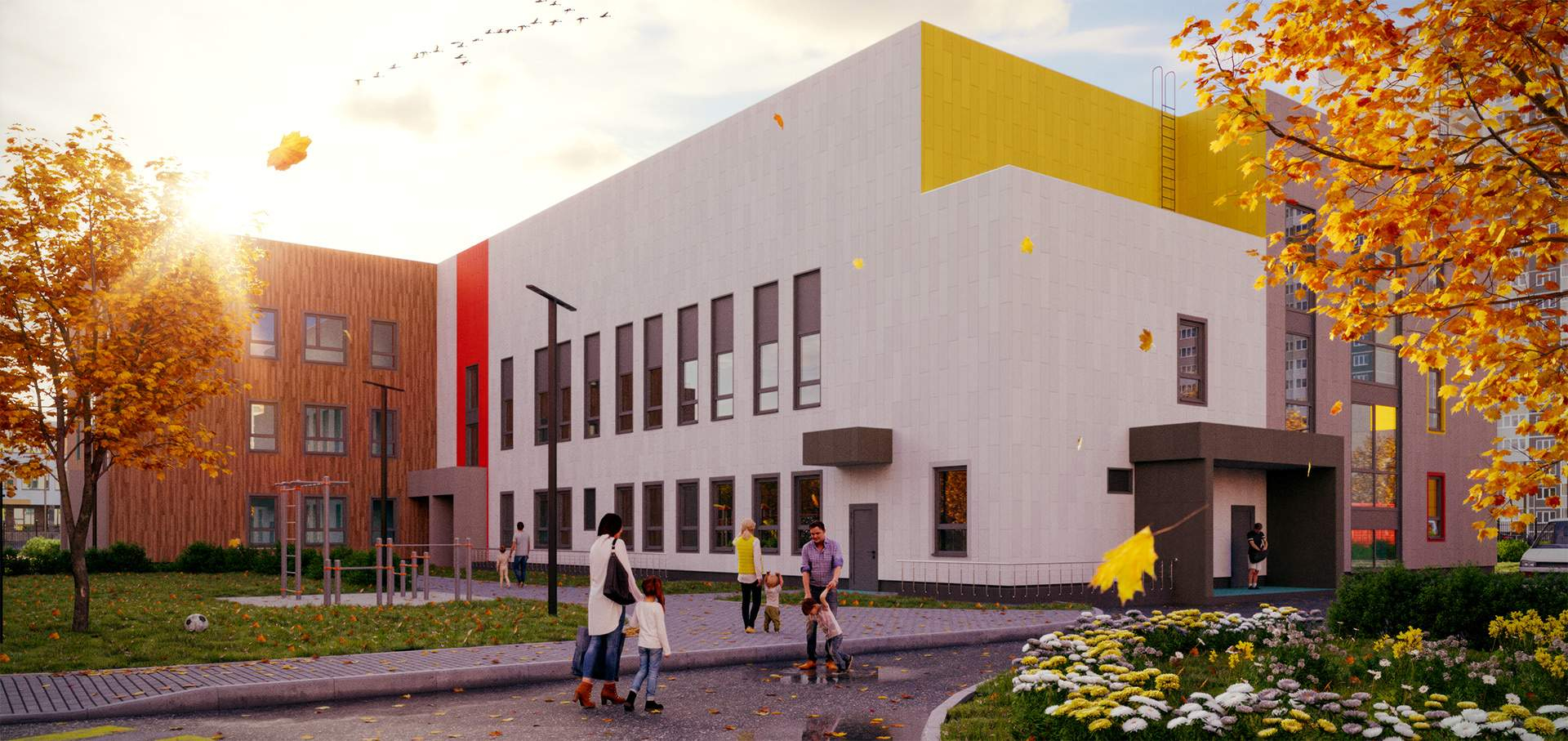 Отдельная многоуровневая парковка. Инфраструктура: детский сад, детские площадки, супермаркет.