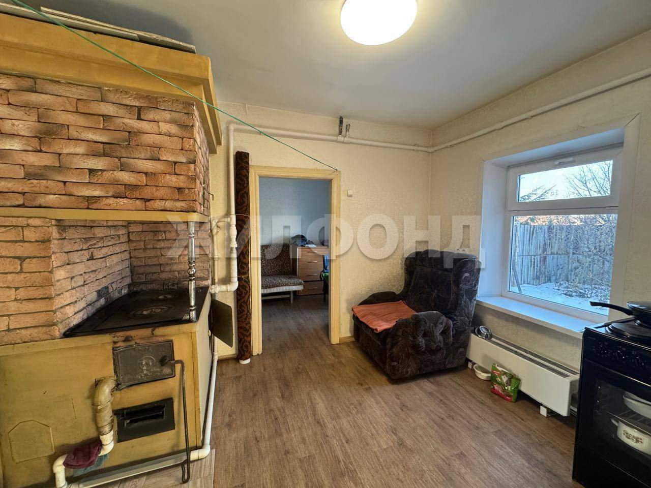 Сделан современный ремонт в светлых тонах. На полу в комнатах линолеум, натяжные потолки, установлены пластиковые окна. Дом можно отапливать двумя способами: печным или водяным.