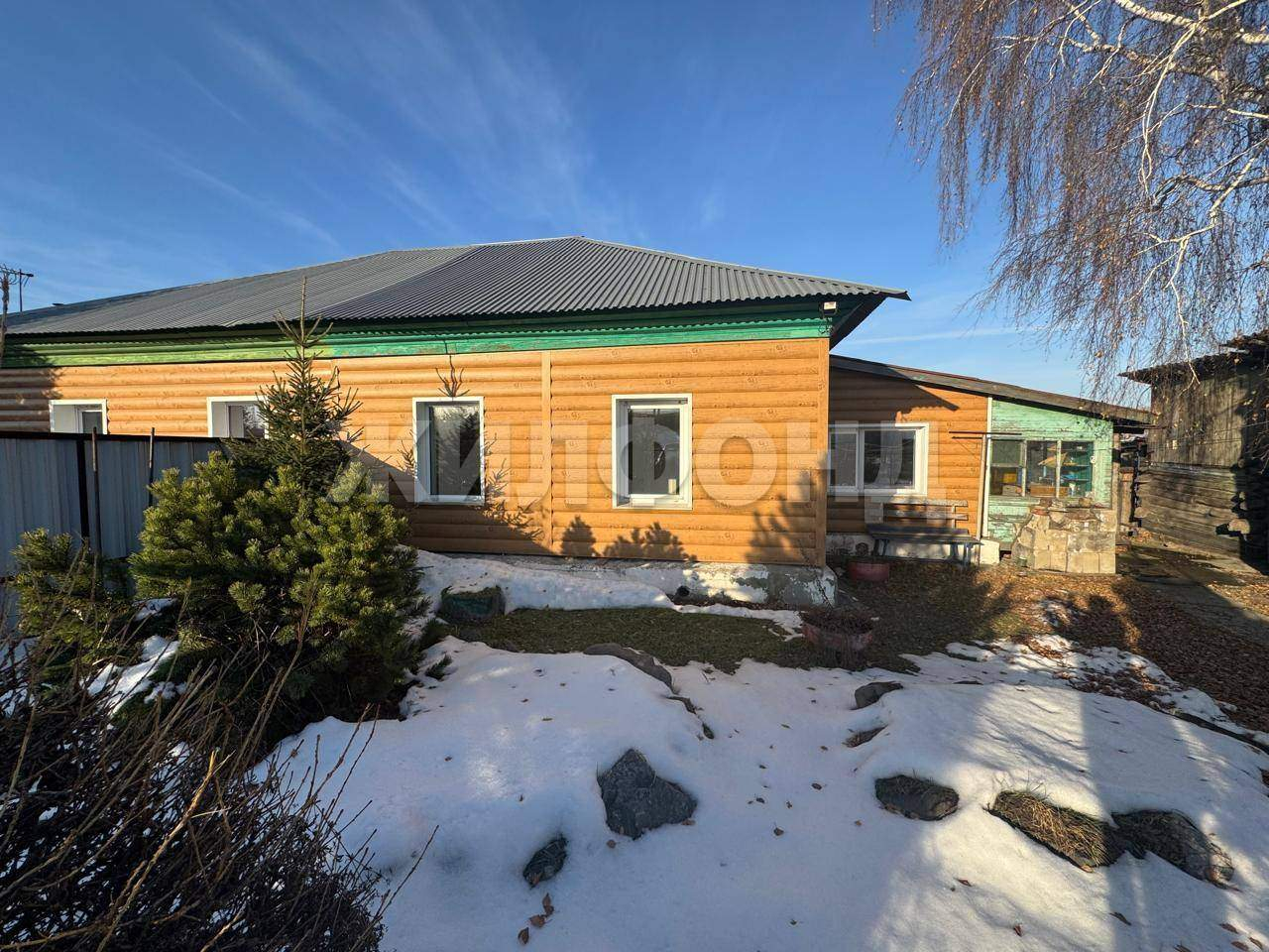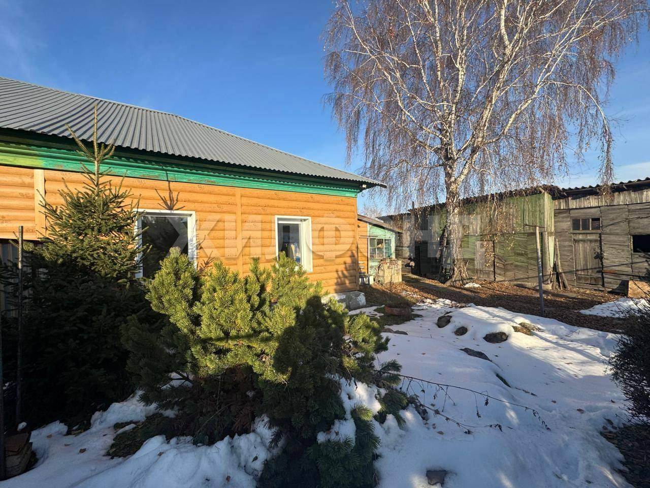Также на территории дома есть хозпостройки и баня.