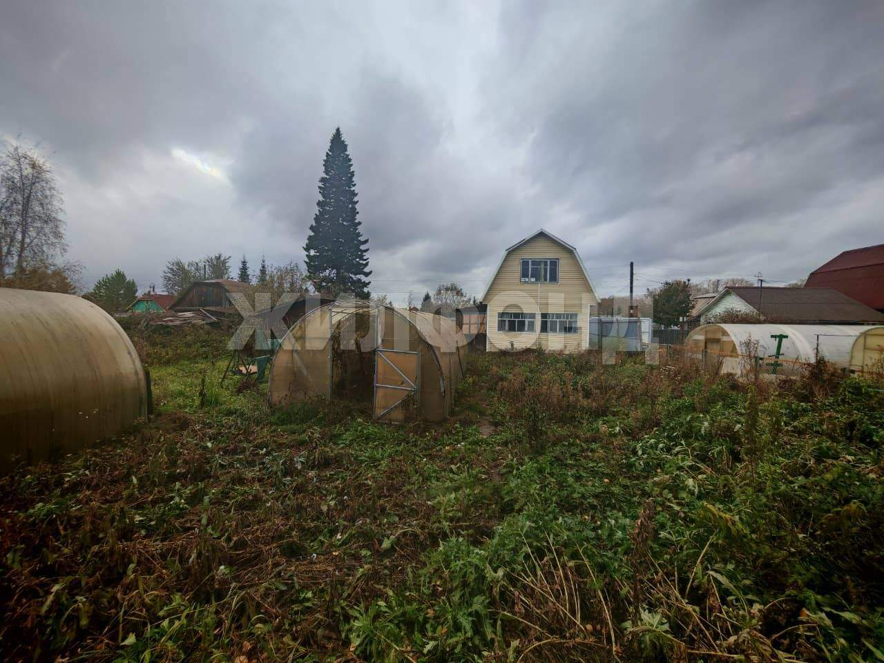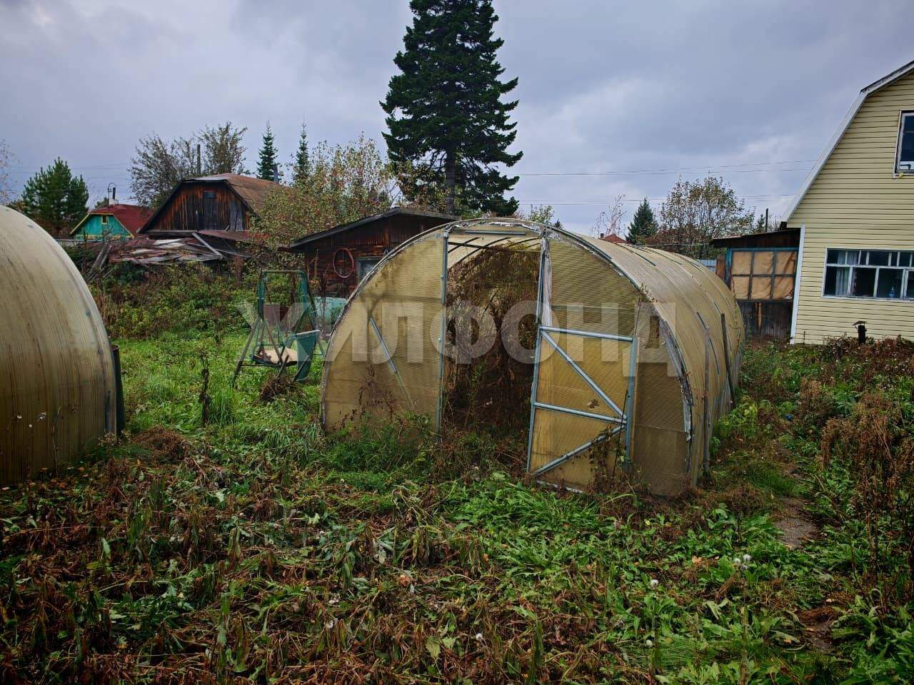 На участке - две теплицы , баня, складские помещения.