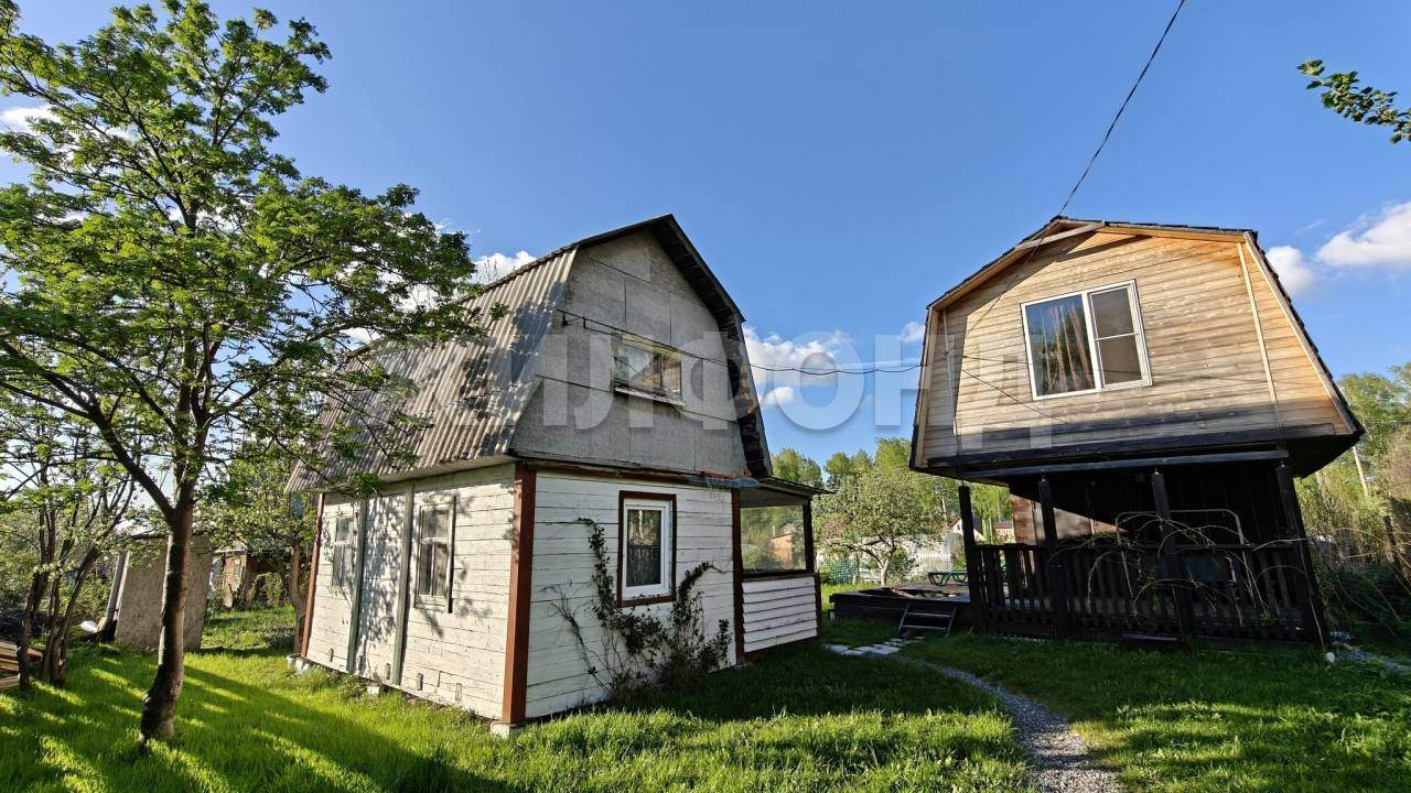 Hа ровном участке 5,6 соток правильной формы расположено 2 строения: двухэтажный домик 5,5х3,5 (с верандой 5,5х2) и двухэтажная баня 4х8 (первый этаж 20 квадратных метров + беседка 12 квадратных метров, второй этаж 32 квадратных метра) с террасой под шезлонги и джакузи. Туалет с освещением на улице.