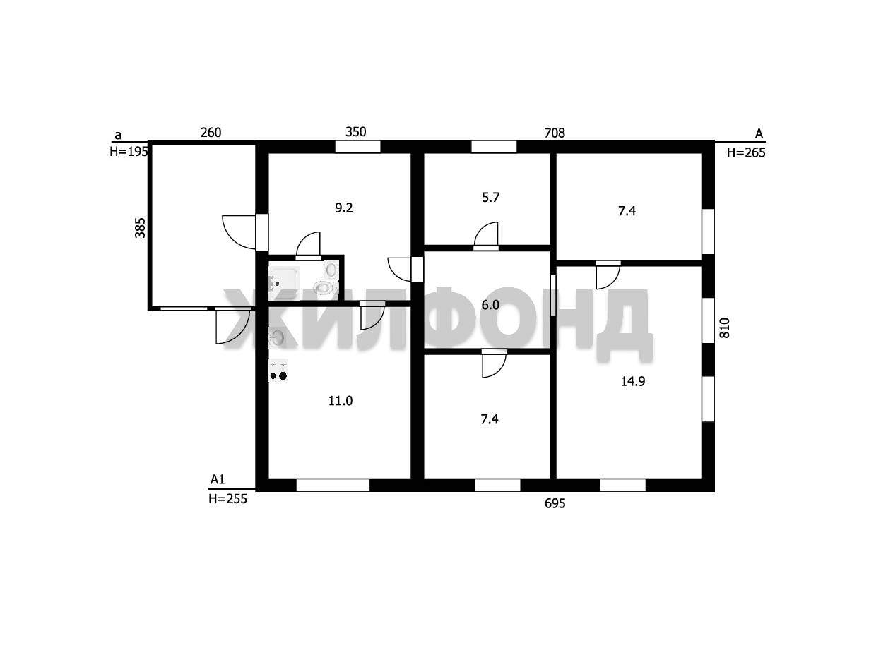 В доме имеется все необходимое для комфортной жизни: просторная кухня, уютная гостиная, три спальни и санузел.