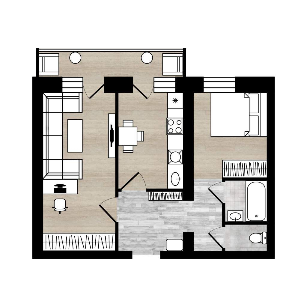 Раздельный санузел, Просторный лоджия с выходом из кухни и комнаты.