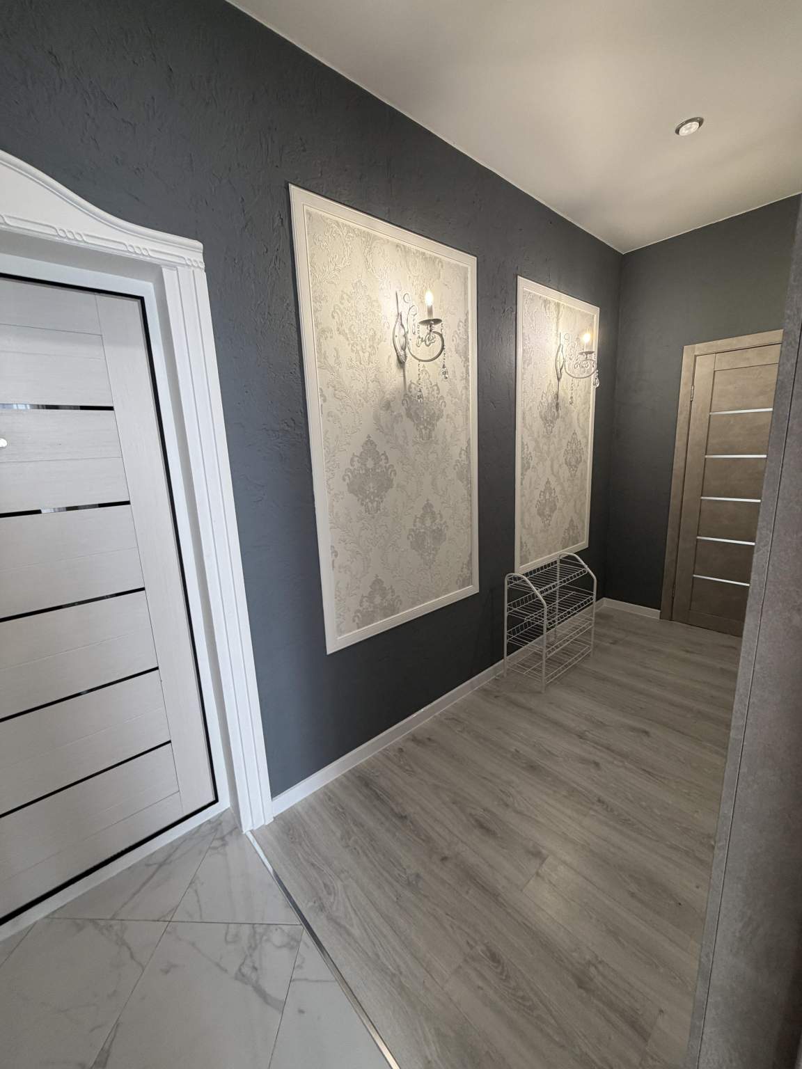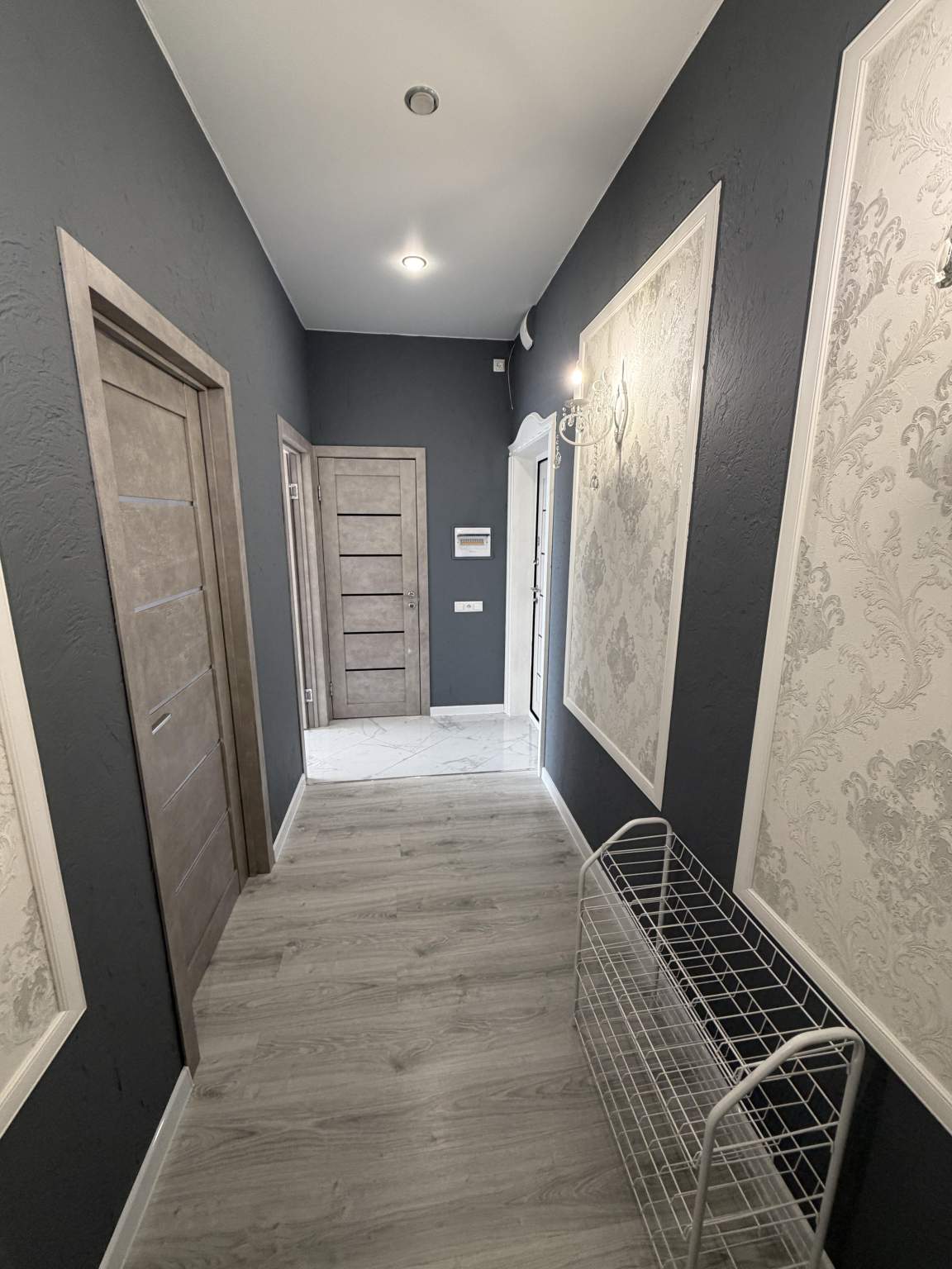 На полу ламинат, балконов - нет, лоджий - нет, окна выходят во двор.