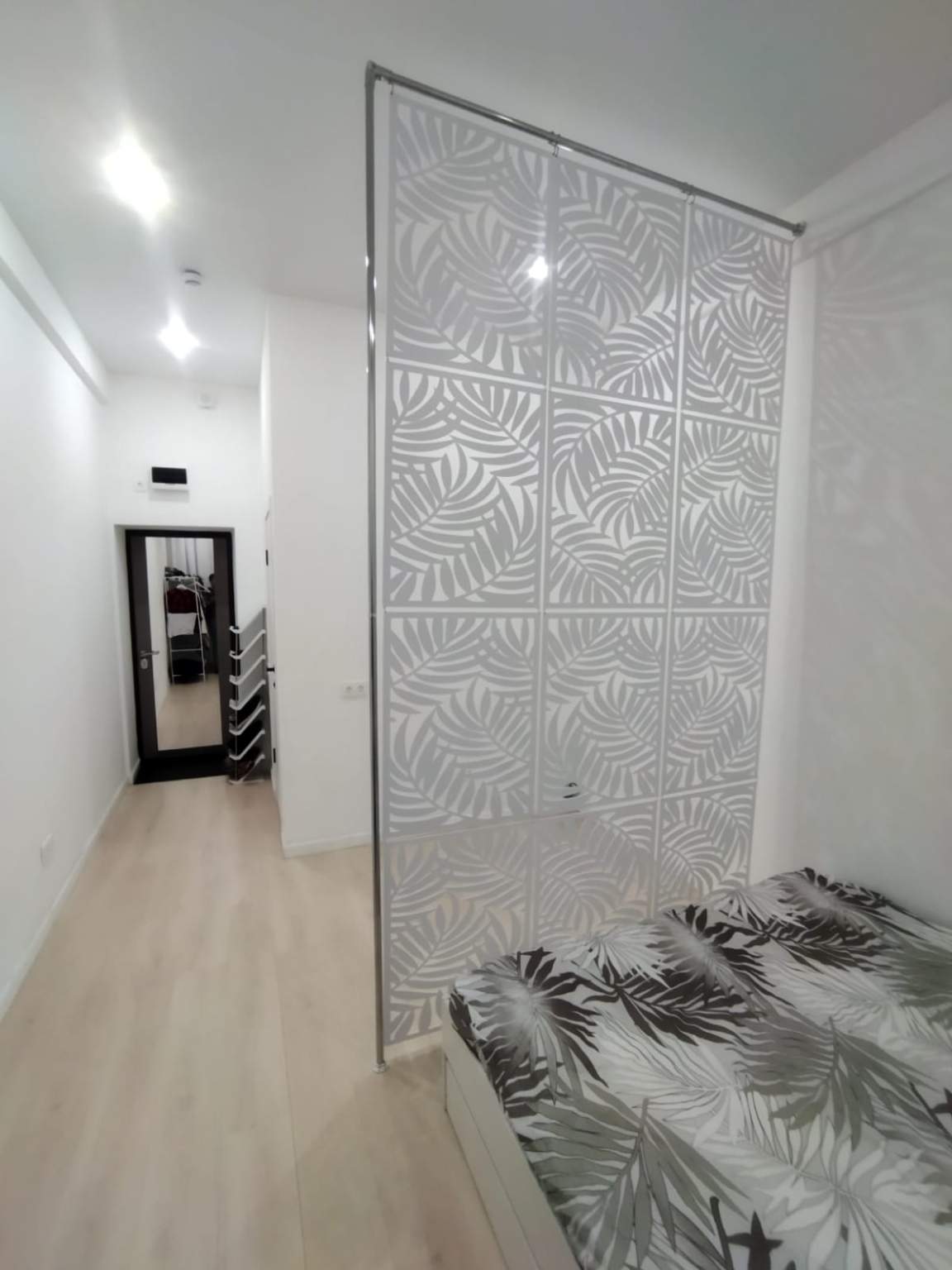 Здесь установлены новые надежные коммуникации и железобетонные перекрытия. В студии выполнена евроотделка, что избавит вас от лишних за от с обустройством помещения. Тут уже есть качественная металлическая дверь c внешней вставкой и зеркальной панелью, натяжные потолки, радиаторы. Санузел отделан под ключ, внутри есть унитаз, раковина, смеситель, поддон для душевой кабины и душевой гарнитур.