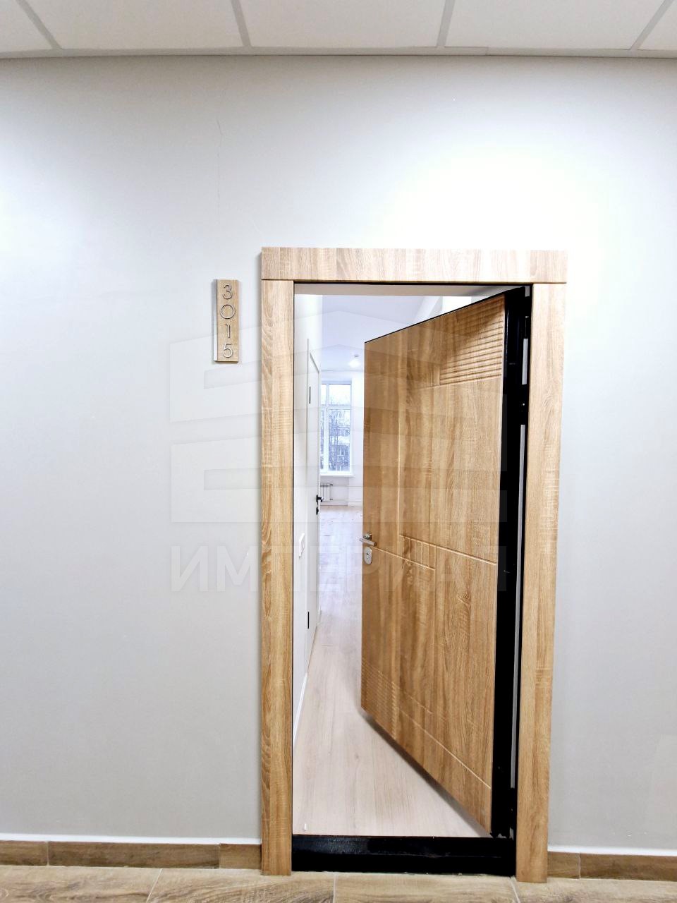 На стенах поклеены обои под покраску, на полу постелен ламинат с плинтусами и откосами. Есть вытяжная вентиляция в санузле и на кухне, выходы хв/гв, место под раковину на кухне. Кроме того, в помещениях уже есть выключатели освещения, розетки для бытовой техники и роутера, а также сделаны закладные для оптоволокна для интернета.