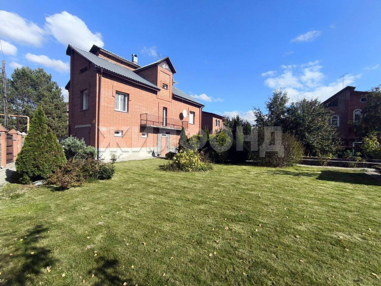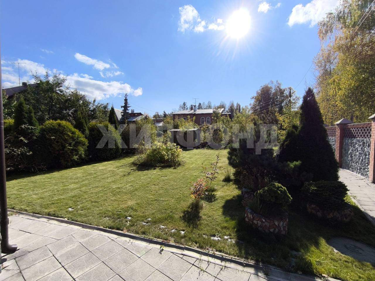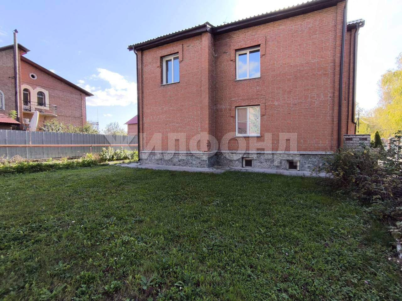 Участок ровный, ухоженный газон, кустарники. Небольшой огород и теплица. Плодоносные деревья груши, а также, малина, жимолость, виктория, смородина и вишня. На участке есть стационарный бассейн, залит бетоном с выводами труб. Территория вокруг дома благоустроена, отличные соседи.