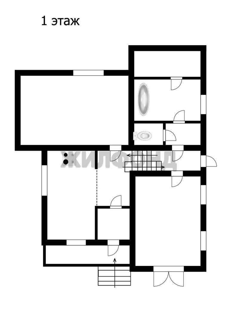 На 1 этаже находятся: прихожая, кухня-гостиная, комната с камином, санузел, гараж.