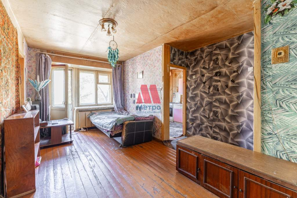 Две комнаты 16 и 10 кв. м, гостиная комната смежная с выходом на балкон. Кухня 6 кв.м. Сан. узел совмещенный. Есть кладовка. Квартира