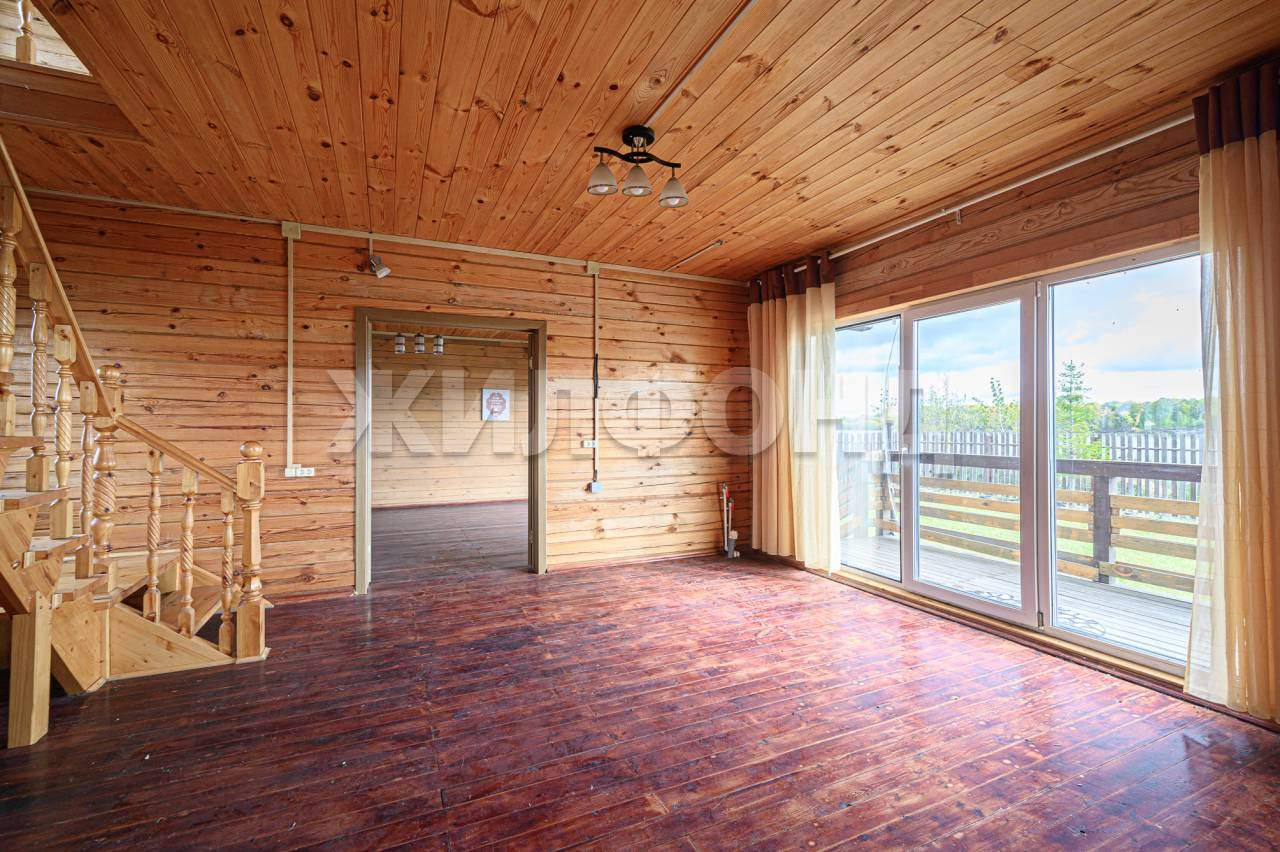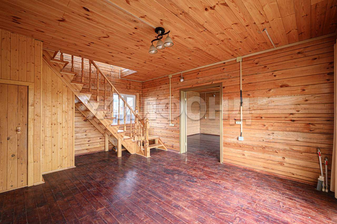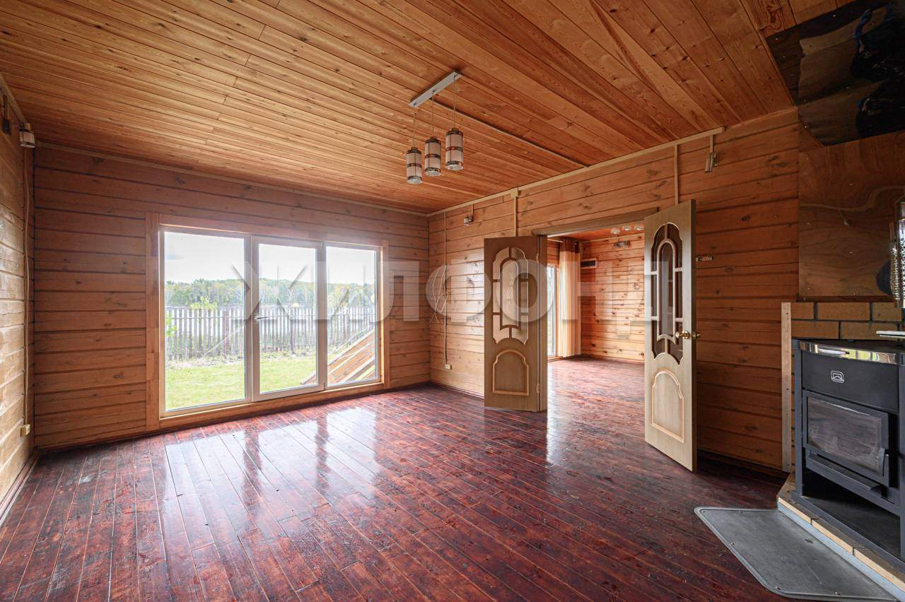 В доме на первом этаже расположены: кухня 16,4 м, гостиная с печкой, санузел с раковиной. Вода в доме только летняя, на межсезонье отопление печное. В доме имеется терасса 12 м2. На втором этаже две смежных комнаты с выходами на балкон. с видом на реку.