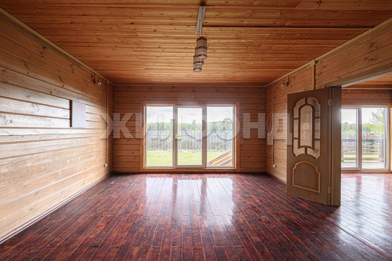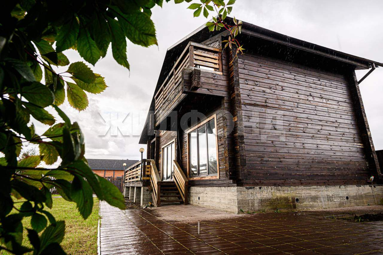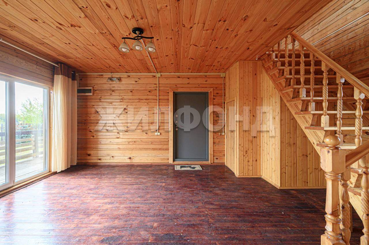 В доме на первом этаже расположены: кухня 16,4 м, гостиная с печкой, санузел с раковиной. Вода в доме только летняя, на межсезонье отопление печное. В доме имеется терасса 12 м2. На втором этаже две смежных комнаты с выходами на балкон. с видом на реку.