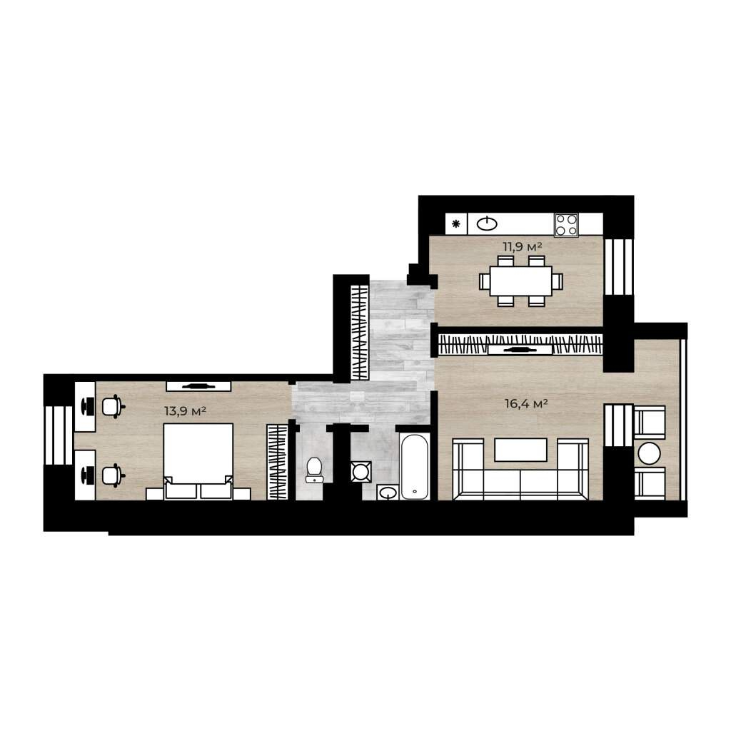 - Туалет и ванная раздельные в плитке.