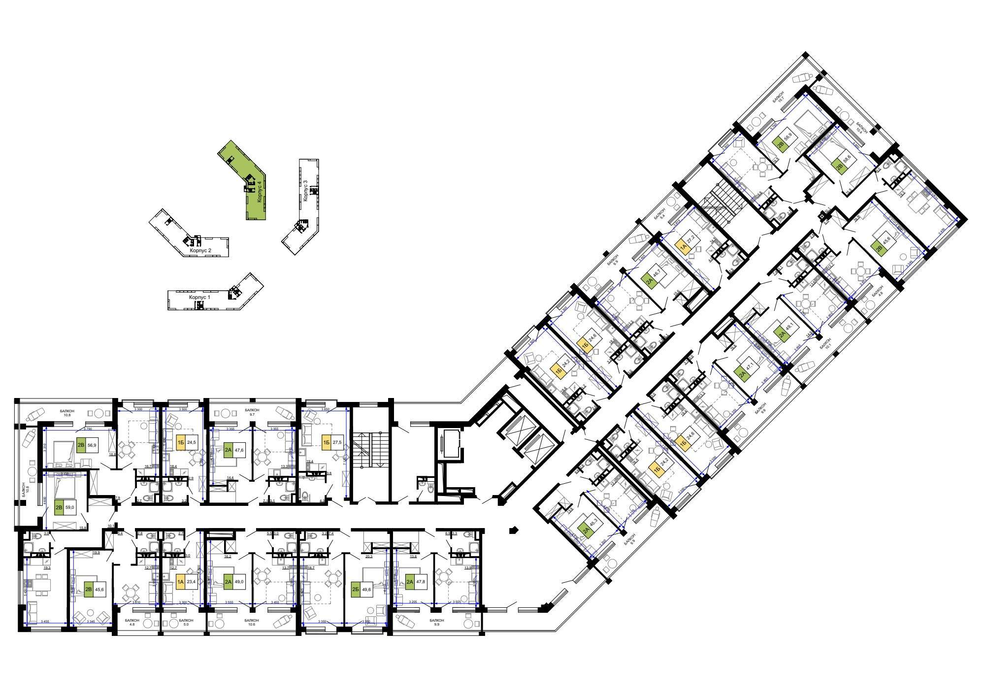 Квартира располагается на 7 этаже 9-этажного дома в ЖК Гостиничный комплекс Мореград.
