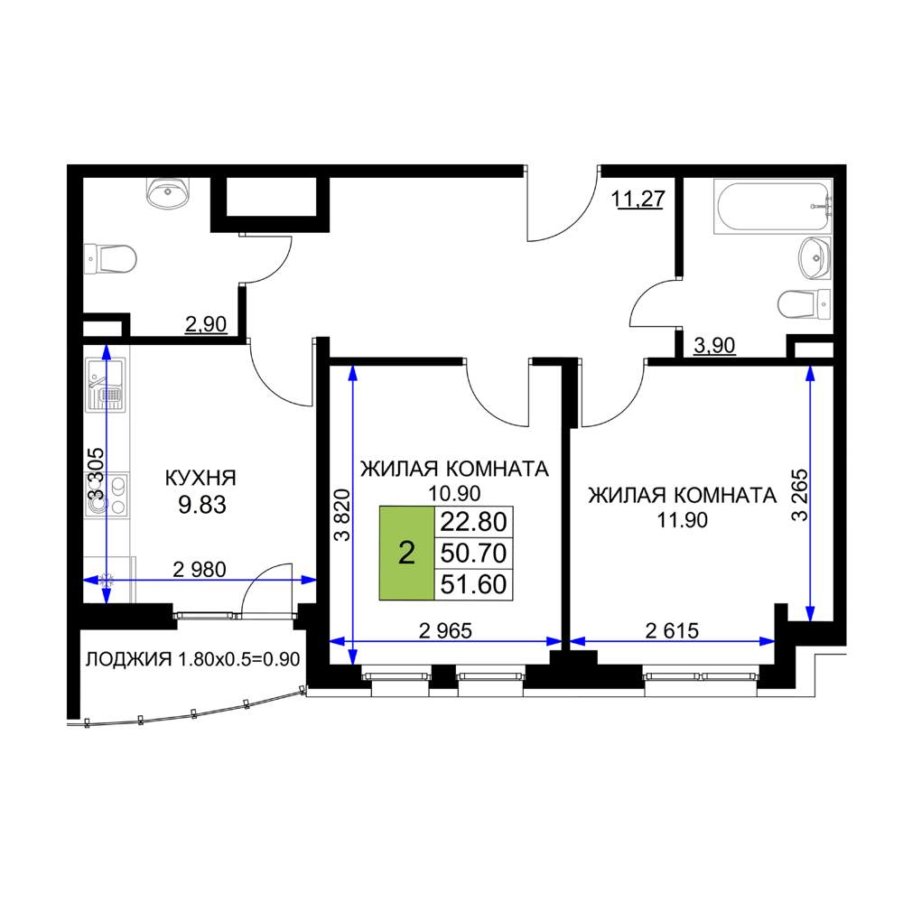 Жилая площадь 15.6 м2, кухня 13.3 м2, чистовая отделка с мебелью.