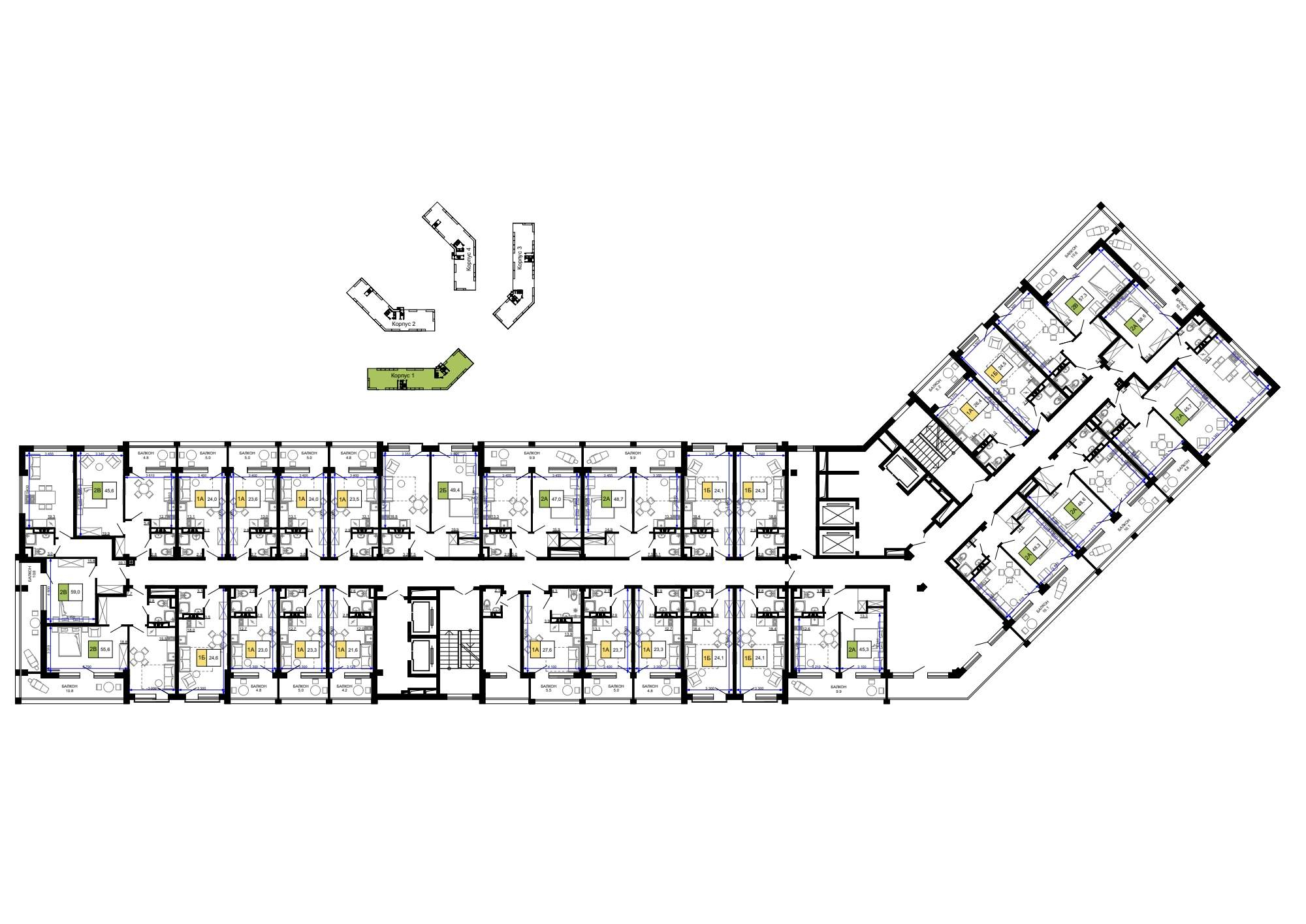 Квартира располагается на 3 этаже 9-этажного дома в ЖК Гостиничный комплекс Мореград.