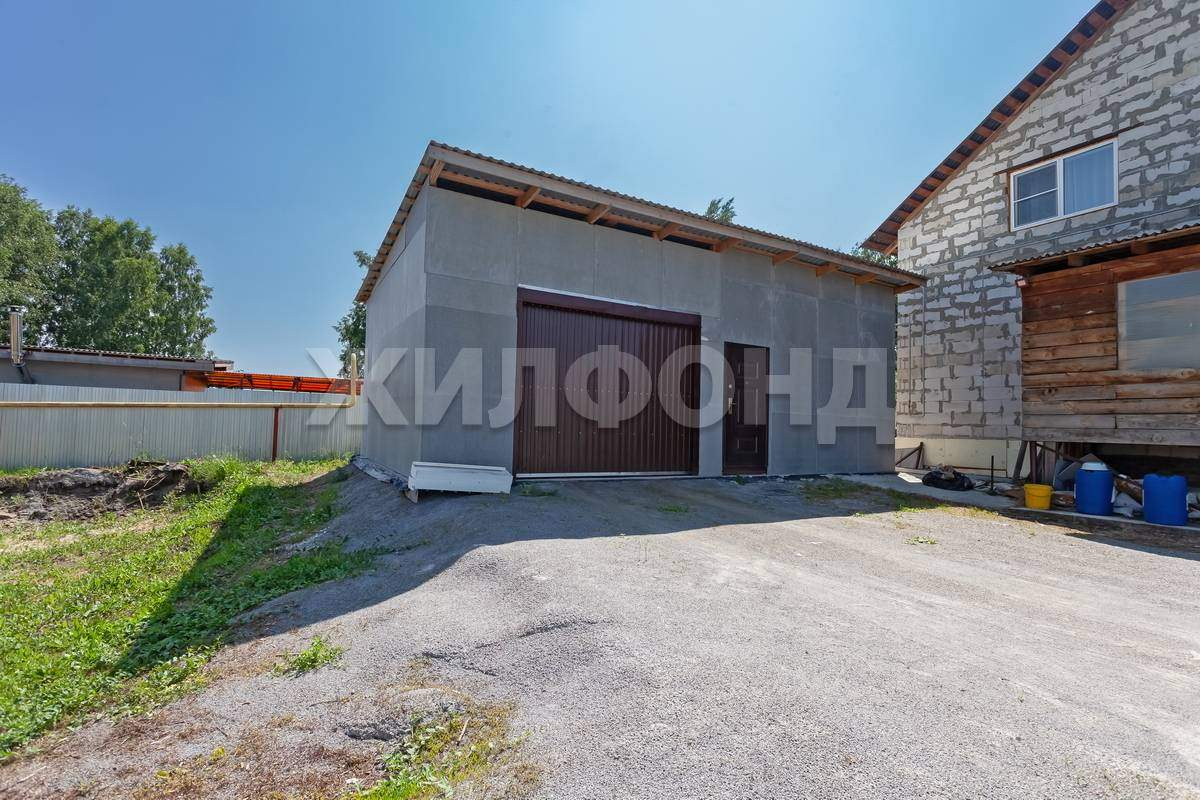 На участке выстроен гараж 6*9 м с откатными воротами, на монолитной плите. Баня 4 * 4 м - брус 20*20 см, на монолитной плите, с беседкой 4 * 4 м и дровником 3 * 2 м, септик на 2 кольца. На бане чердачное помещение, крыша покрыта ондулином.