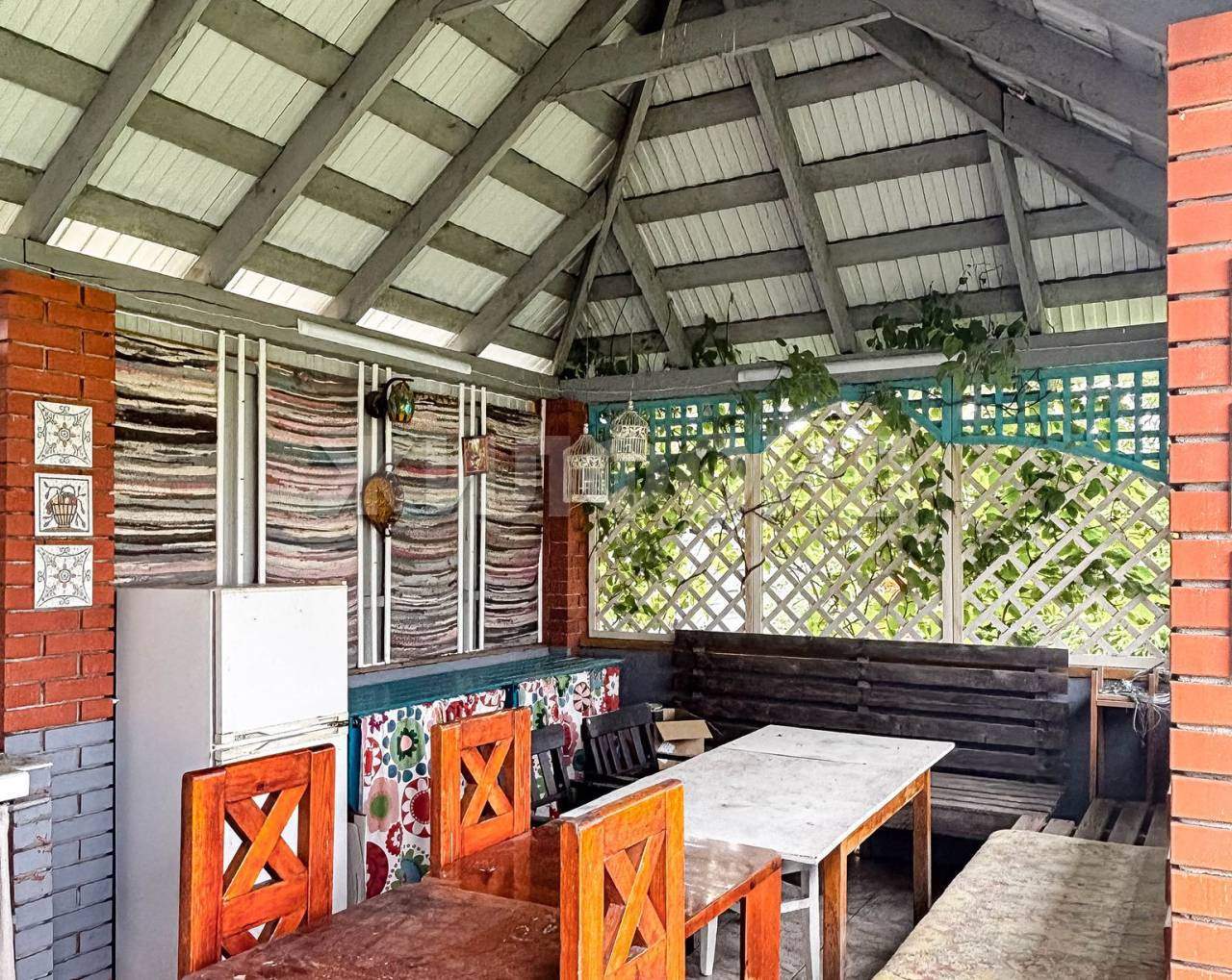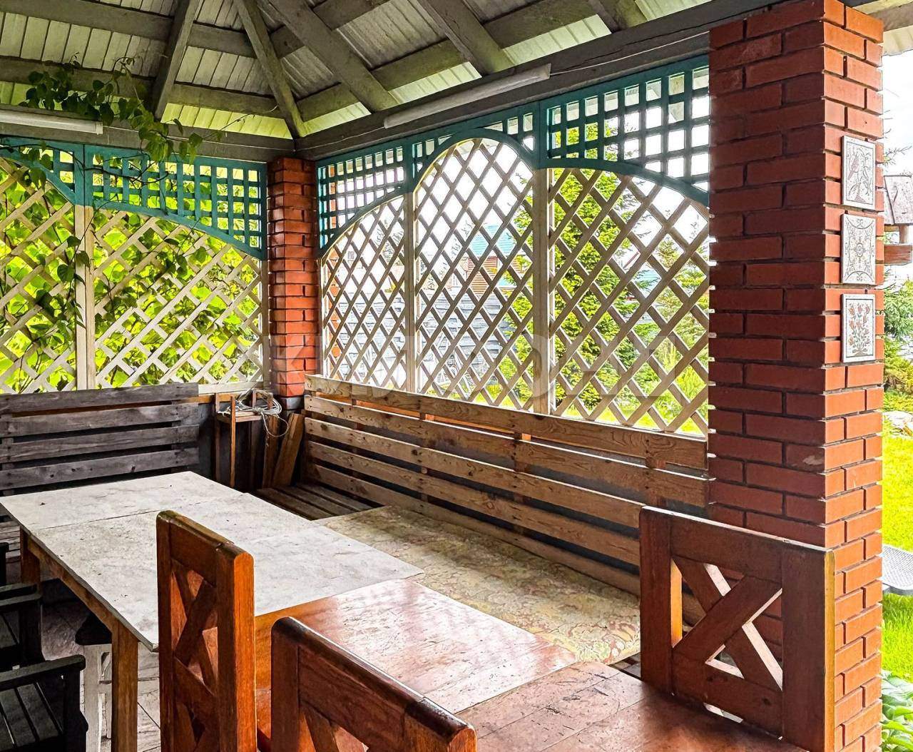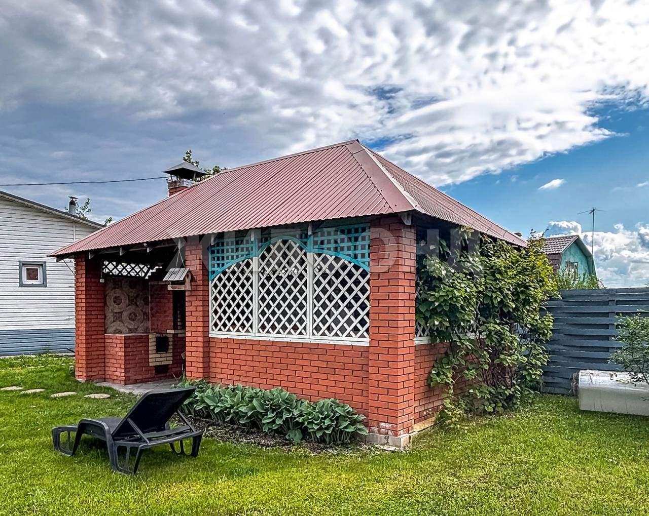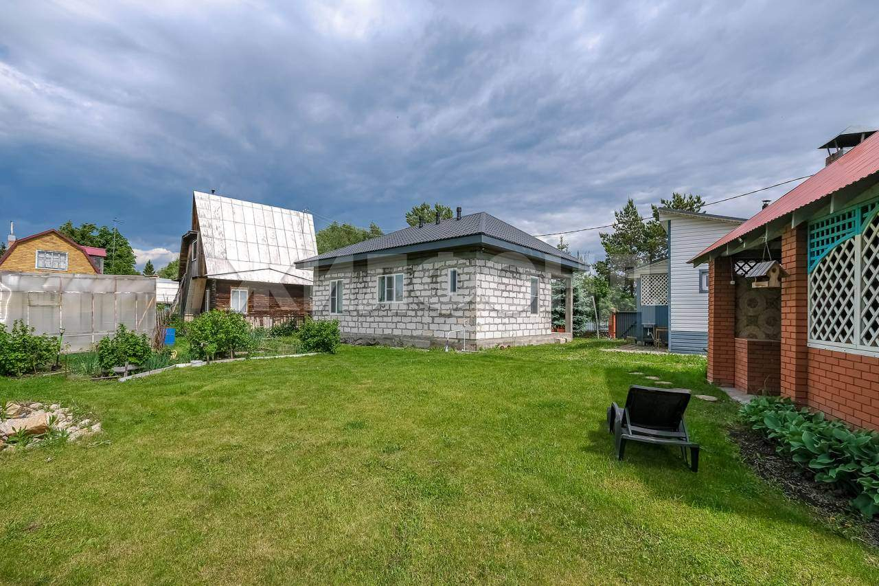 На территории имеется Баня, крытая Площадка барбекю с беседкой, Качели, уличный туалет, теплицы. Вся территория ухожена, растет зеленая травка, ели, сосна, можжевельник, яблони, смородина, жимолость, виктория.