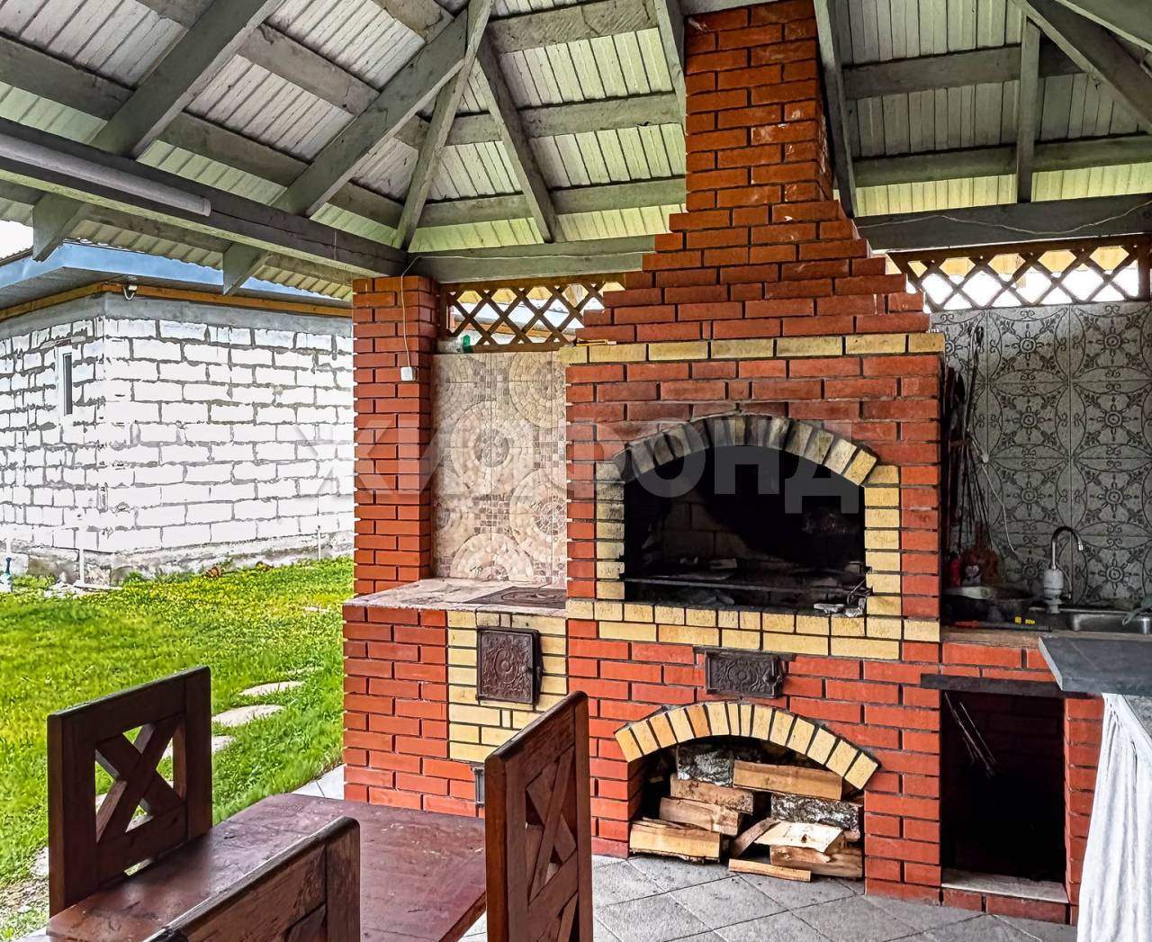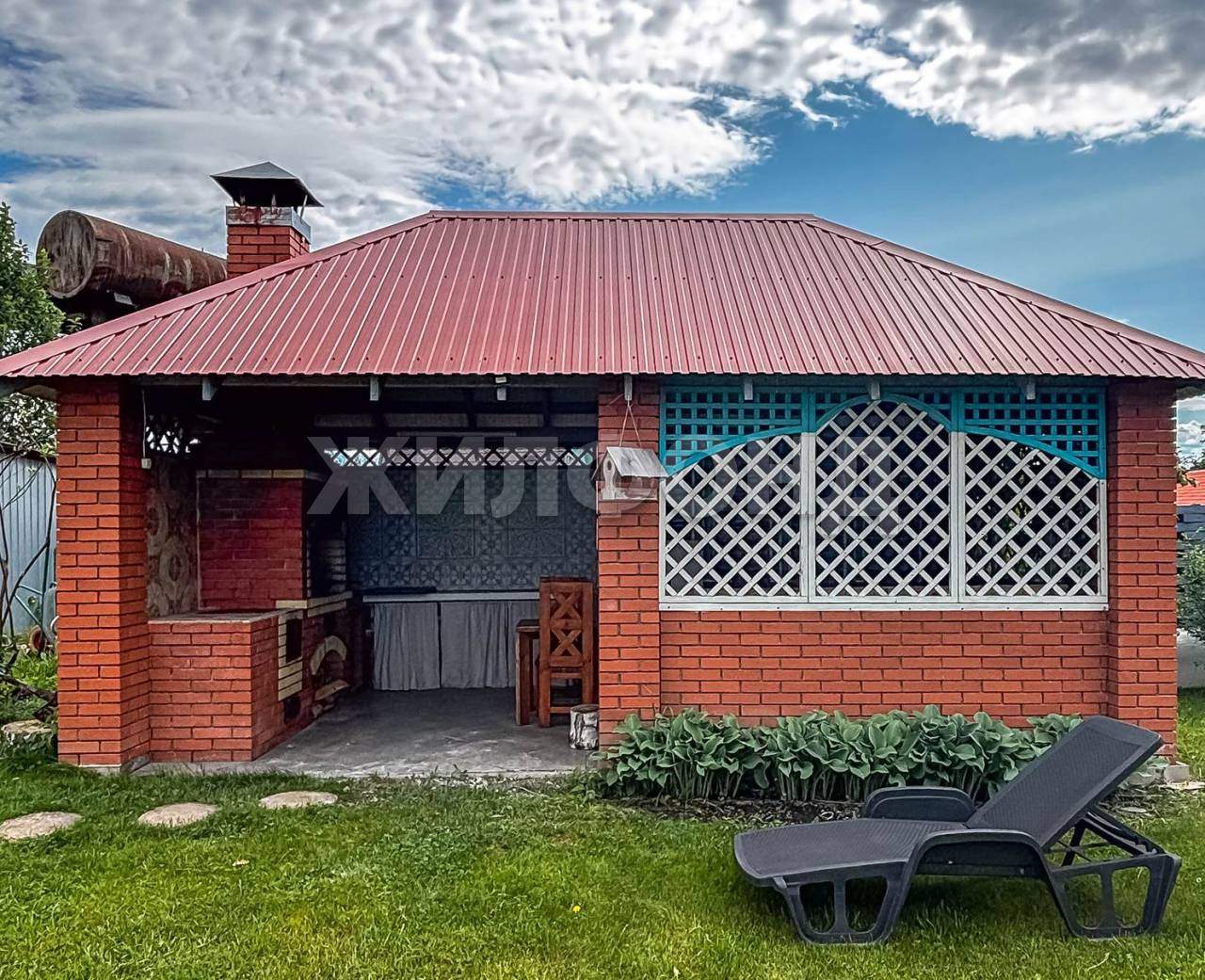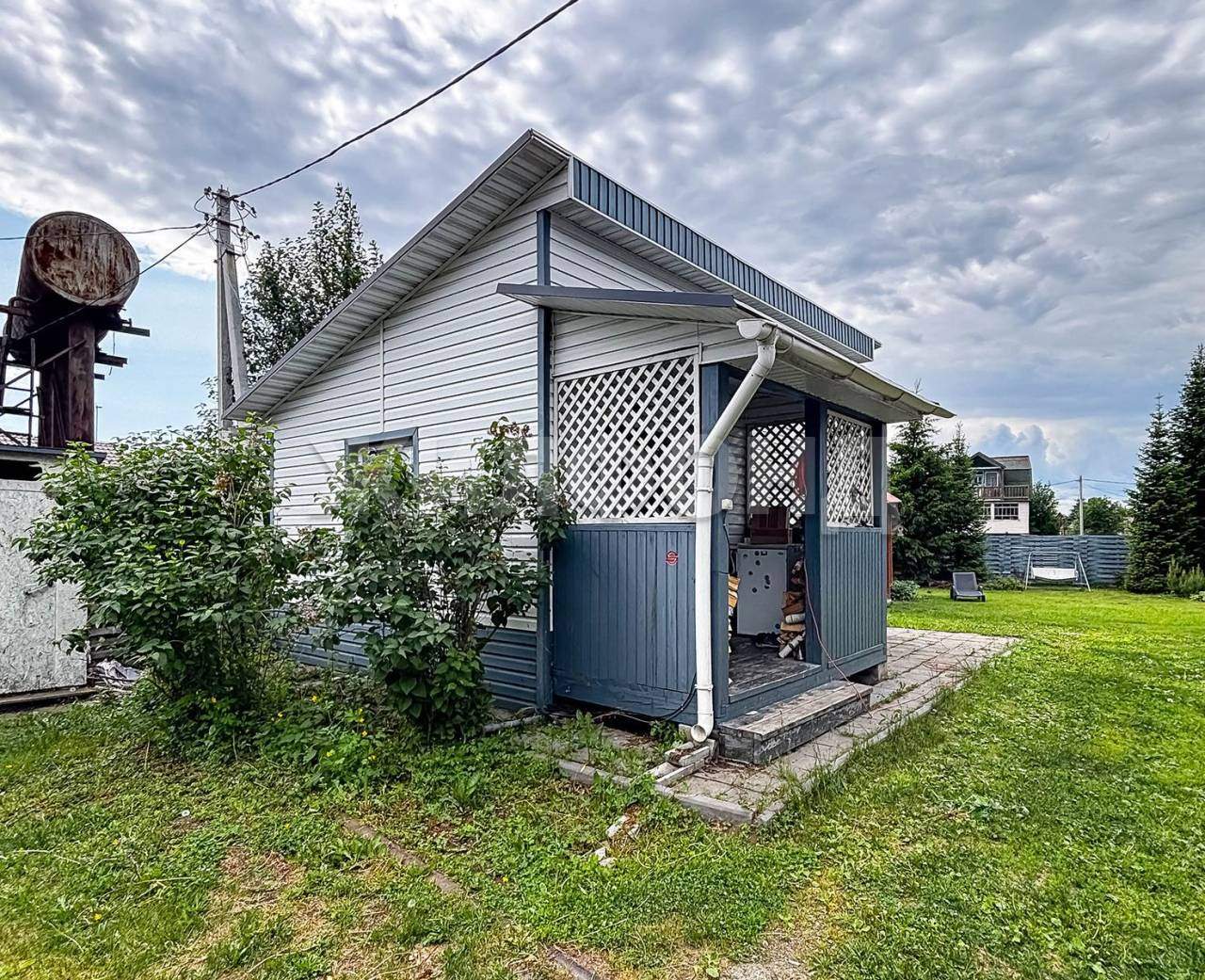 На территории имеется Баня, крытая Площадка барбекю с беседкой, Качели, уличный туалет, теплицы. Вся территория ухожена, растет зеленая травка, ели, сосна, можжевельник, яблони, смородина, жимолость, виктория.