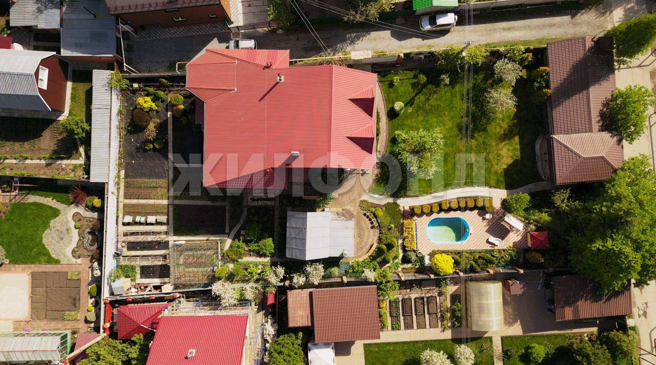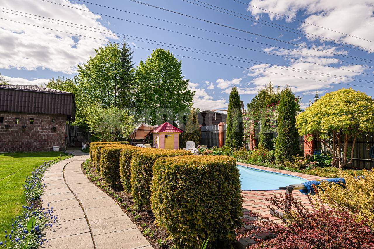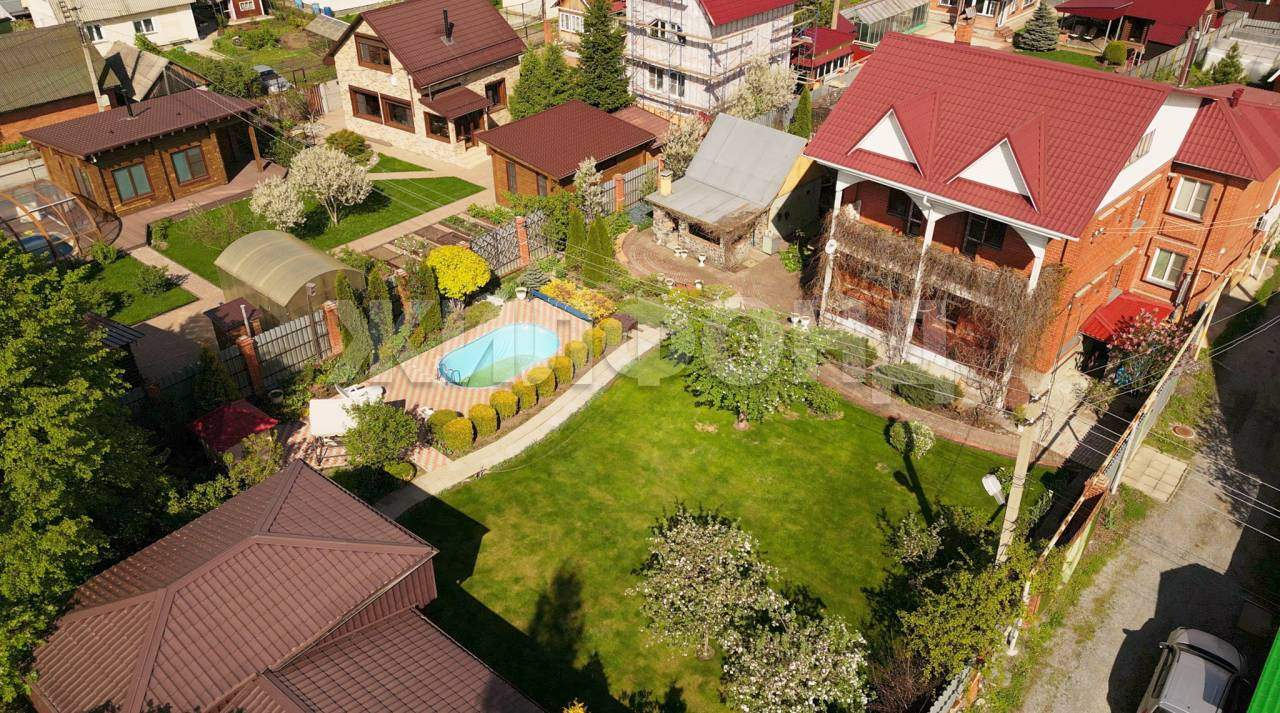 На территории имеется гараж на 2 машины, подъезд с улицы, крытая парковка. , Бассейн с зоной отдыха, летняя баня с примыкающей к ней крытой площадкой барбекю и уличный камин, на всей территории ландшафтный дизайн, дорожки внутри участка выложены тротуарной плиткой и брусчаткой. Имеется стеклянная теплица площадью 30 кв. м, уличный туалет, два виноградника, место для посадки огородных культур.