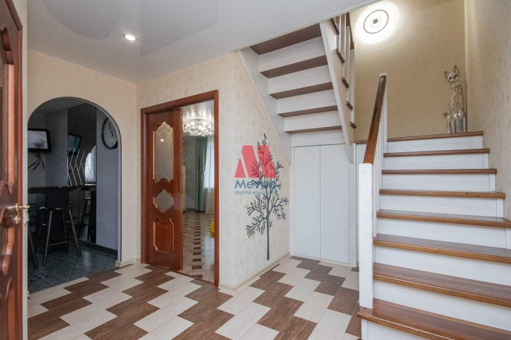 Квартира двухуровневая, расположена на 9 и 10-ом этажах. Из окон открывается живописный вид на город и Павловскую рощу.