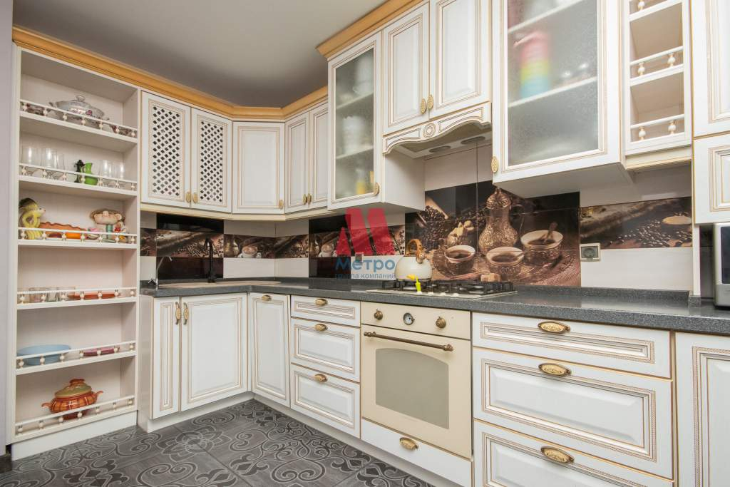 Кухня 10,2 кв.м. , установлено необходимое оборудование: гарнитур, холодильник, посудомоечная машина, электрический шкаф и варочная панель. Вся бытовая техника фирмы Zigmund & Shtain.