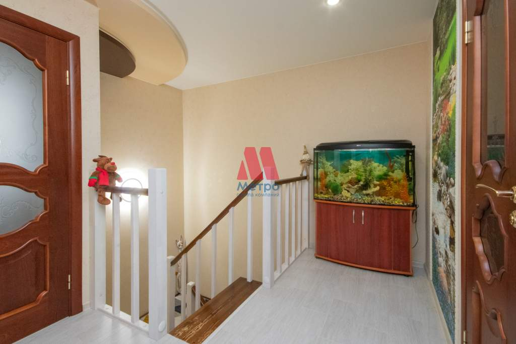 Лестница на второй этаж сделана из дуба и ели. Под лестницей оборудована гардеробная.