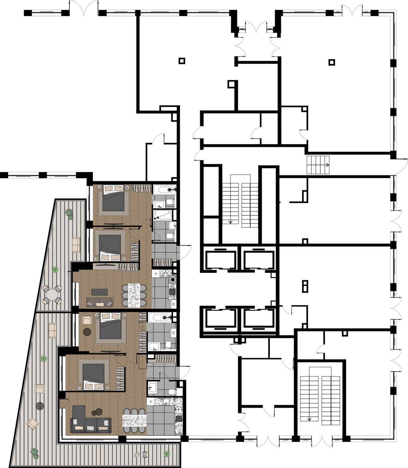 Квартиры с просторными террасами - выход на свежий воздух прямо из дома, гармония природы и городской роскоши.