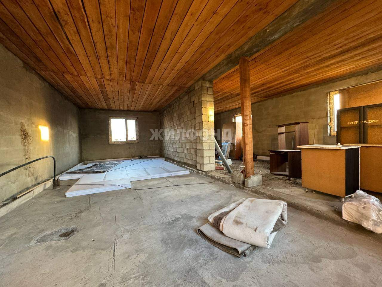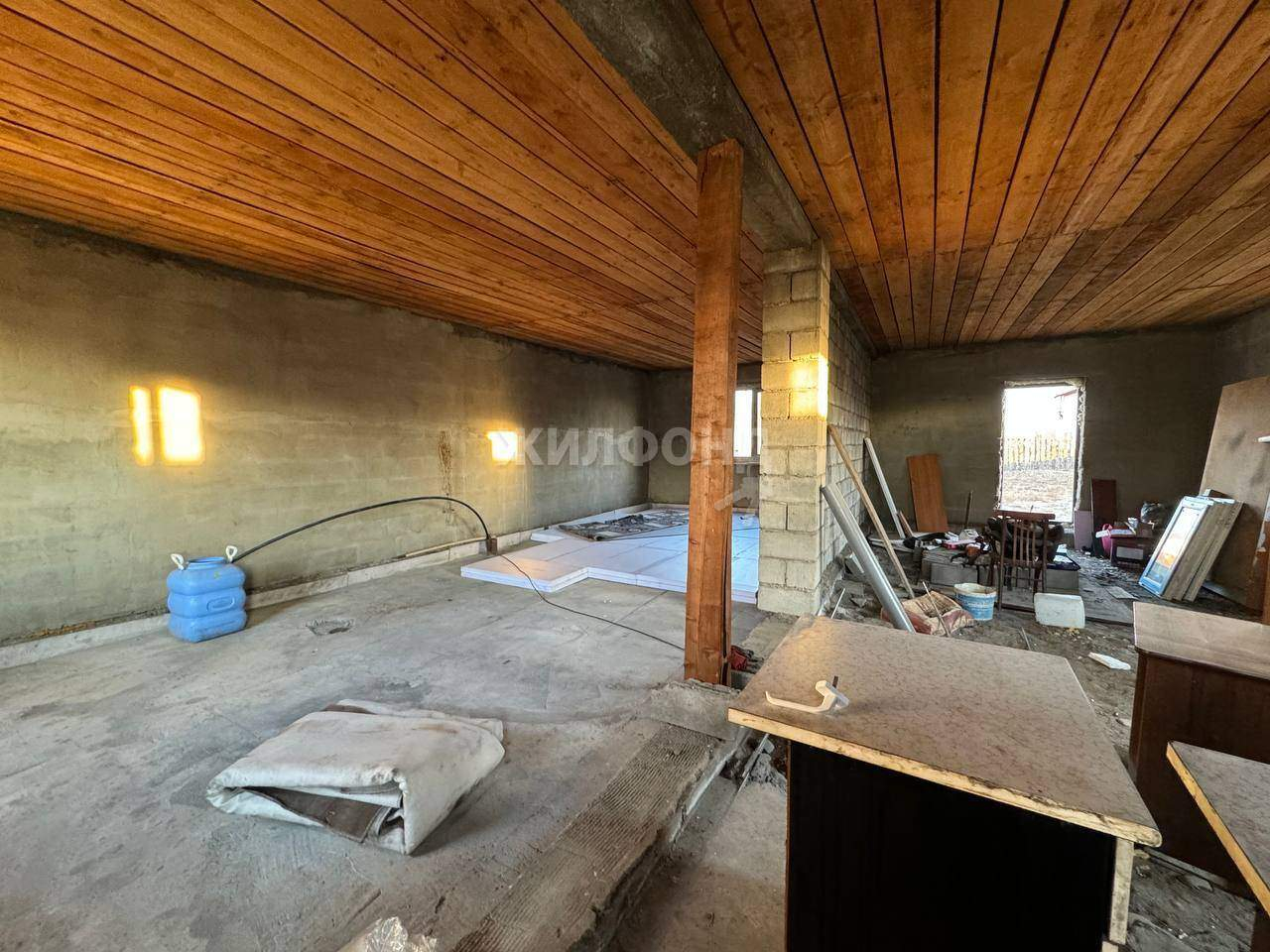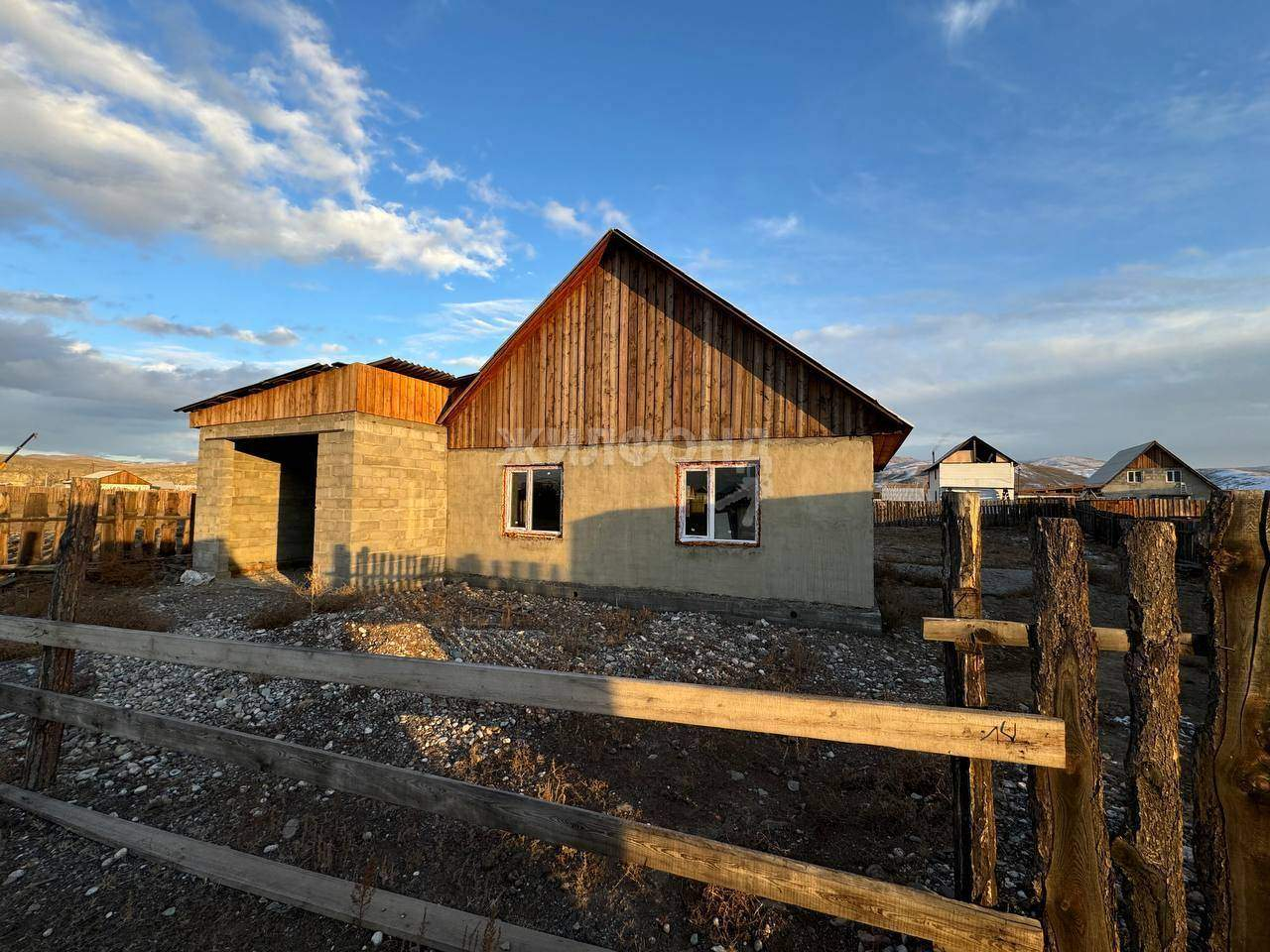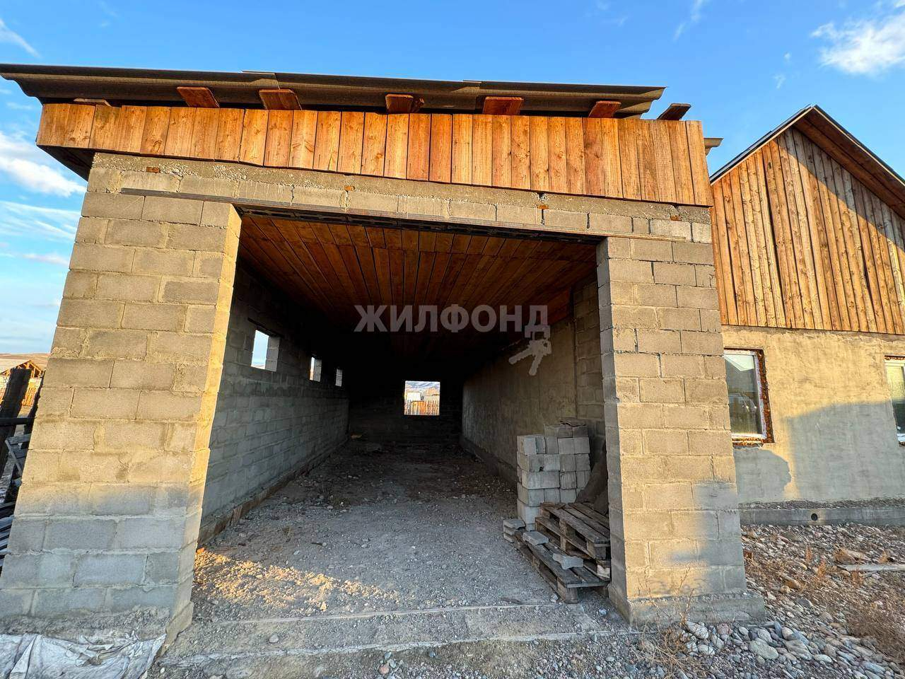 Дом построен из арболита. Окна и дверь установлены, осталось поставить котёл и можно жить. Вода в доме, скважина. Пристроен гараж на 2 машины. Это очень удобно, не нужно думать, где оставить автомобиль. Территория очень большая - 10 соток. При желании можно расширить дом, построить баню, посадить огород и сад. Много места для всех ваших планов.
