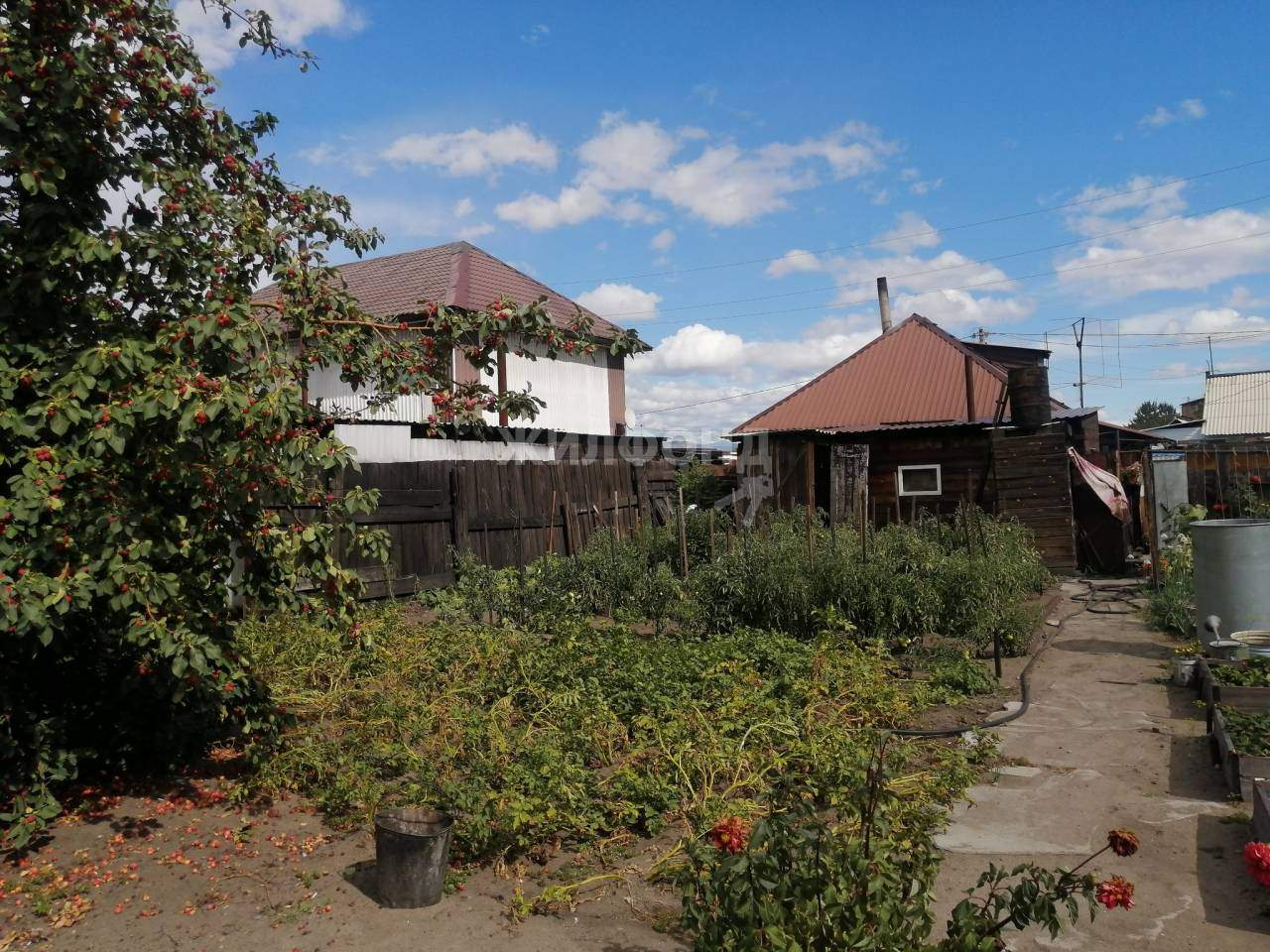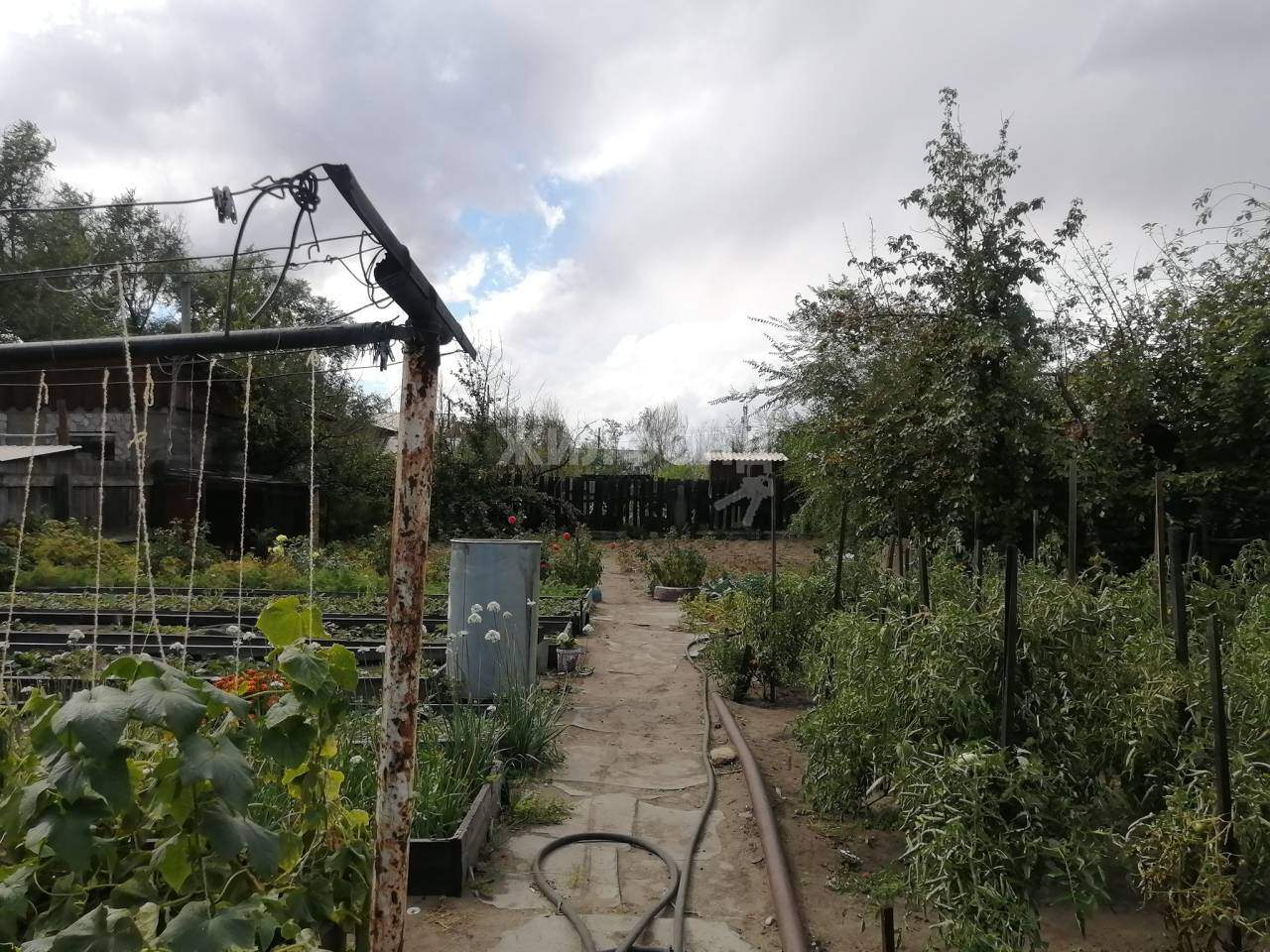 Плодородный огород, ухоженная земля, грядки, ягоды. Есть баня, летний душ.