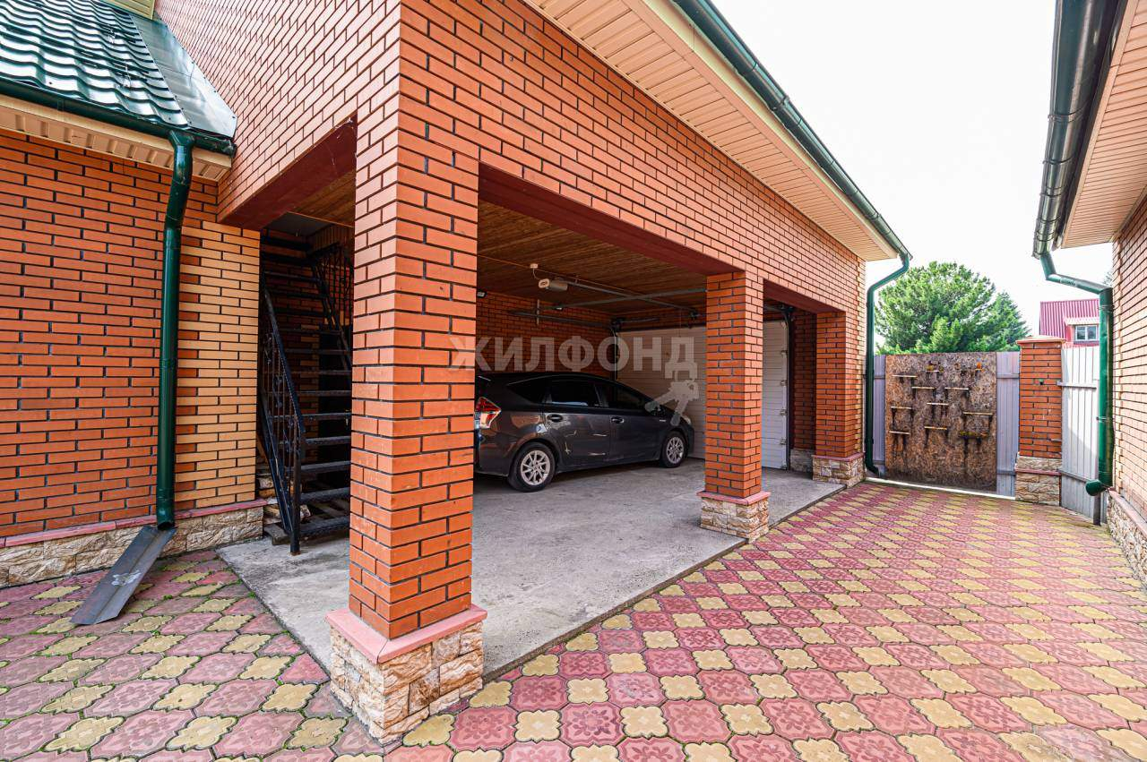 Есть место для парковки автомобиля, выложенное тротуарной плиткой, газон для игр и отдыха.