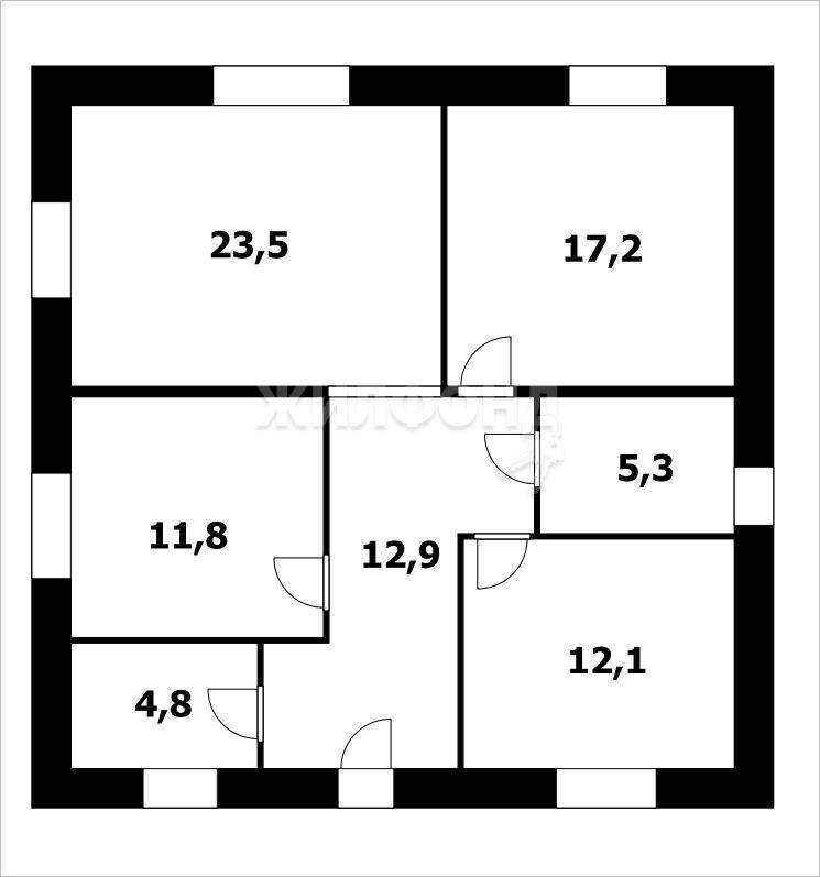 Коттедж очень удобной функциональной планировки с гостиной (23,5 кв.м. ) с выходом на террасу плюс 3 изолированные комнаты.
