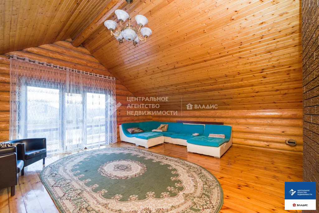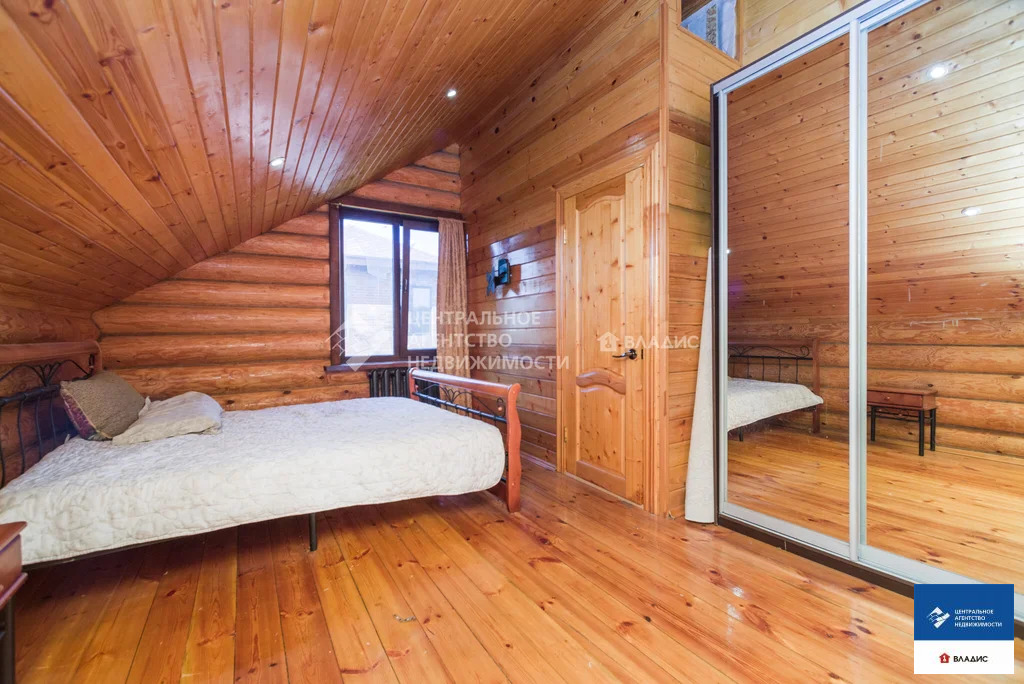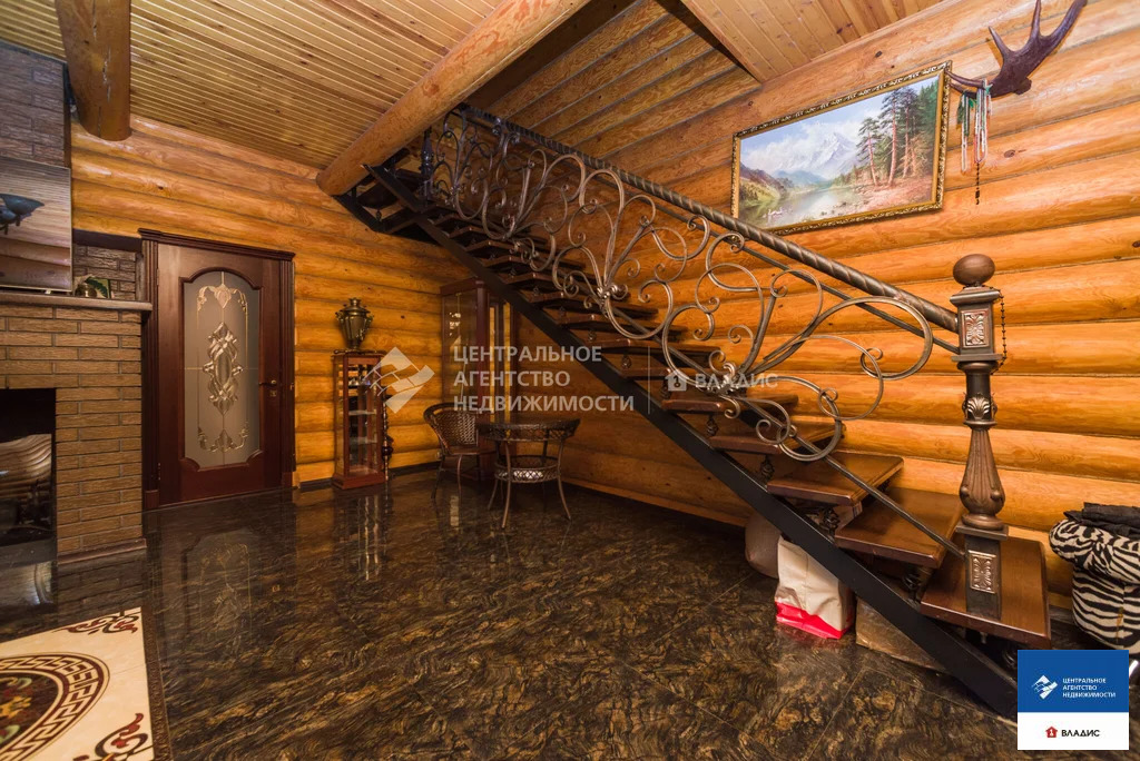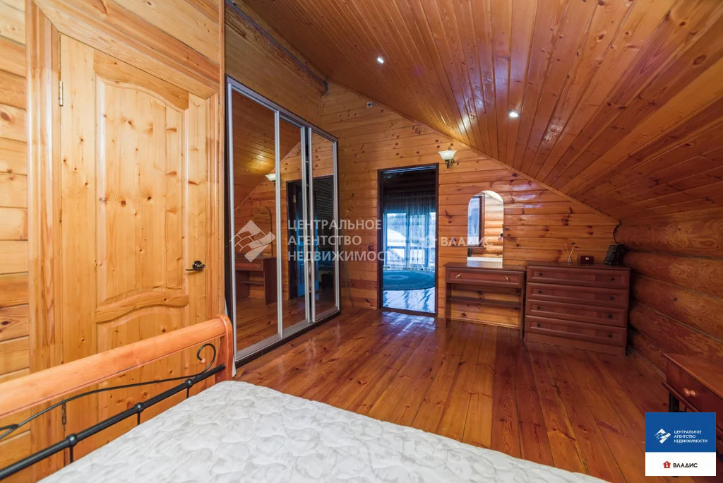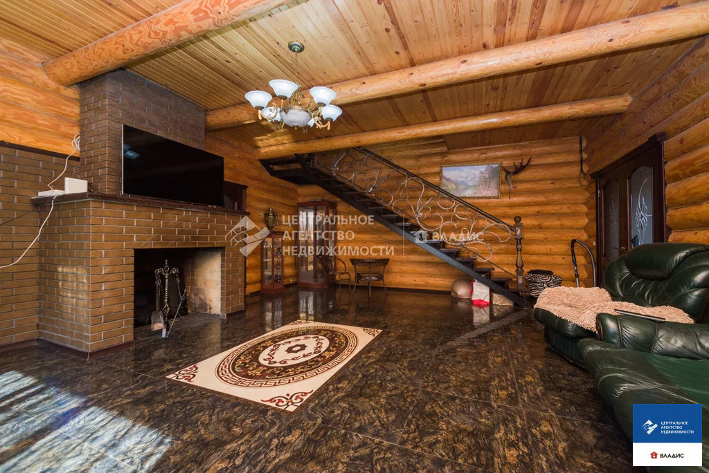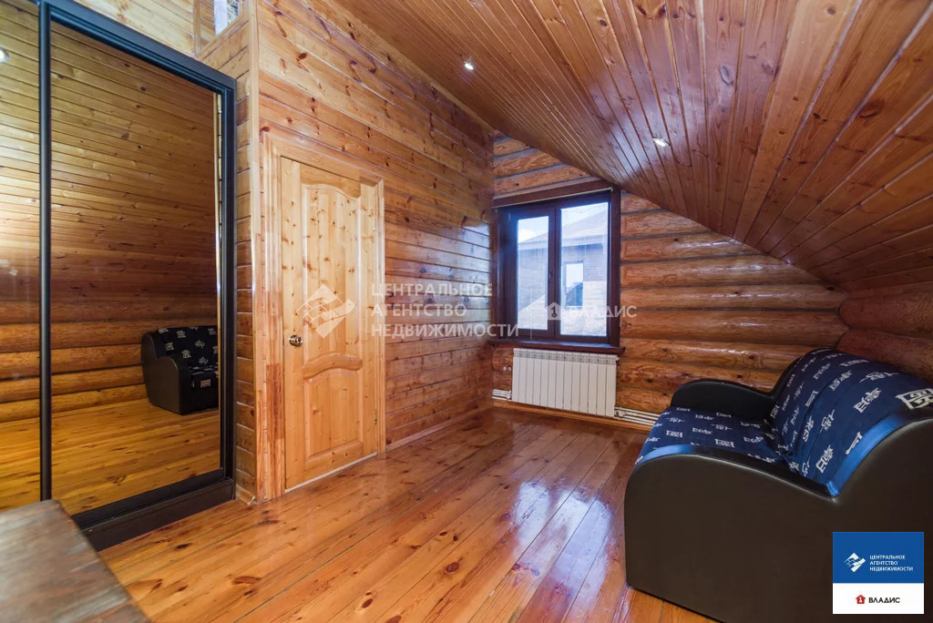 Код объекта: 1775661.Продаю уютный дом в СТ "Водоканал" (Рязань, Михайловское шоссе). Дом двухэтажный, бревенчатый (диаметр бревна 30-35 см, Мордовия). Крыша - металлочерепица. Дом 2014 года постройки. Дом очень теплый. Строили его для нашей семьи. Основное требование к будущему дому - экология. Бревна покрыты специальным лаком, который позволяет сохранять тонкий древесный аромат. В деревянном доме приятно находится, в нем особенная атмосфера- находясь здесь, у вас повышается настроение, гармонизируется состояние и внутренний покой. На первом этаже :- прихожая;- вместительная гардеробная;- большая кухня с кухонным гарнитуром;- большой уютный холл с камином (из холла на второй этаж ведет дизайнерская кованная лестница);- большая спальня (с гардеробной комнатой, совмещенным санузлом и ванной).На втором этаже:- две спальни;- совмещенный санузел;- холл с выходом на террасу;- большая терраса с красивым видом на окружающую местность.В дом заведены все коммуникации - газ, вода, электричество, канализация. На первом этаже теплый пол (очень удобно, позволяет значительно экономить на отоплении). Также в доме остается практически вся мебель. Въезжай и живи!Для любителей расслабиться во дворе располагается баня с сауной и парилкой. Также с большой компанией можно отдохнуть под навесом с мангалом, большая крытая веранда, тенистый сад с плодоносящими фруктовыми деревьями и кустами.С домом продается участок площадью 5,65 соток, огороженный забором из профлиста, оборудованном откатными воротами. До центра города на автомобиле 10 минут. Звоните заранее, договоримся о просмотре.