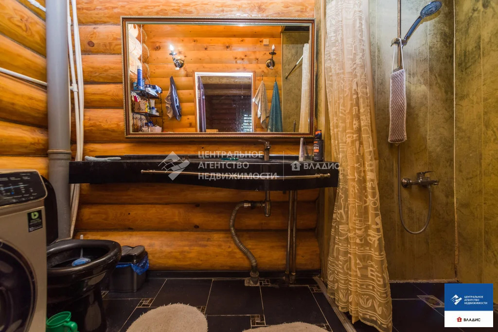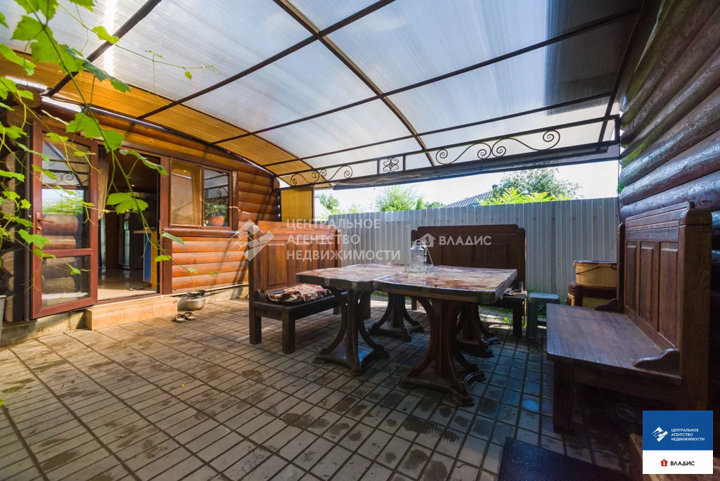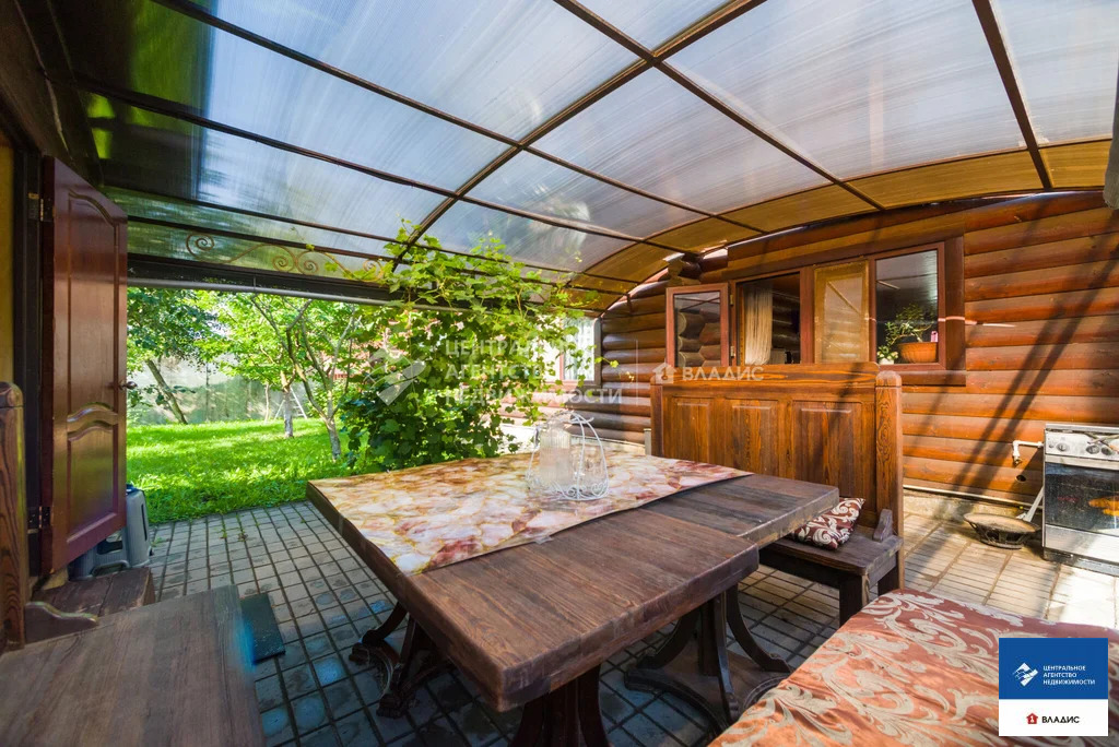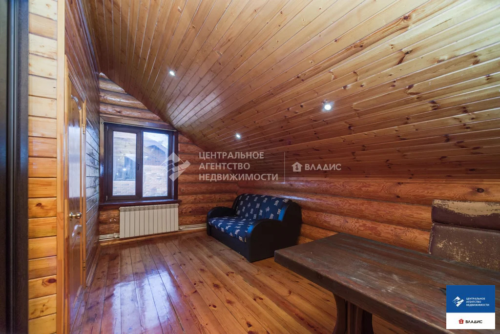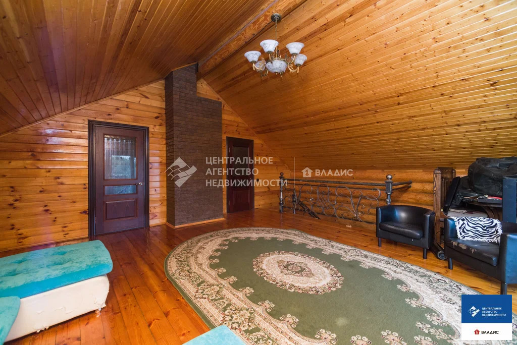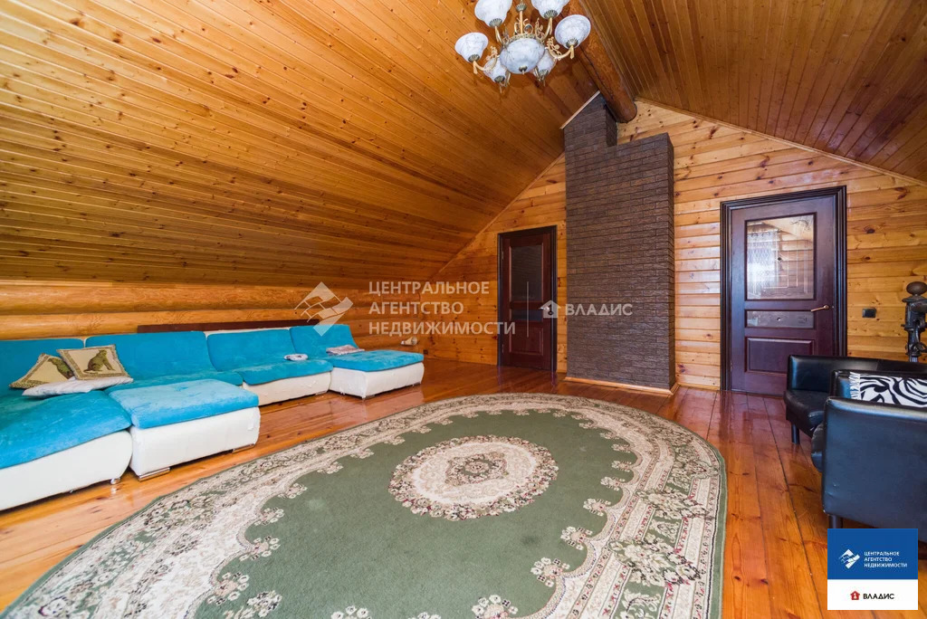 Код объекта: 1775661.Продаю уютный дом в СТ "Водоканал" (Рязань, Михайловское шоссе). Дом двухэтажный, бревенчатый (диаметр бревна 30-35 см, Мордовия). Крыша - металлочерепица. Дом 2014 года постройки. Дом очень теплый. Строили его для нашей семьи. Основное требование к будущему дому - экология. Бревна покрыты специальным лаком, который позволяет сохранять тонкий древесный аромат. В деревянном доме приятно находится, в нем особенная атмосфера- находясь здесь, у вас повышается настроение, гармонизируется состояние и внутренний покой. На первом этаже :- прихожая;- вместительная гардеробная;- большая кухня с кухонным гарнитуром;- большой уютный холл с камином (из холла на второй этаж ведет дизайнерская кованная лестница);- большая спальня (с гардеробной комнатой, совмещенным санузлом и ванной).На втором этаже:- две спальни;- совмещенный санузел;- холл с выходом на террасу;- большая терраса с красивым видом на окружающую местность.В дом заведены все коммуникации - газ, вода, электричество, канализация. На первом этаже теплый пол (очень удобно, позволяет значительно экономить на отоплении). Также в доме остается практически вся мебель. Въезжай и живи!Для любителей расслабиться во дворе располагается баня с сауной и парилкой. Также с большой компанией можно отдохнуть под навесом с мангалом, большая крытая веранда, тенистый сад с плодоносящими фруктовыми деревьями и кустами.С домом продается участок площадью 5,65 соток, огороженный забором из профлиста, оборудованном откатными воротами. До центра города на автомобиле 10 минут. Звоните заранее, договоримся о просмотре.