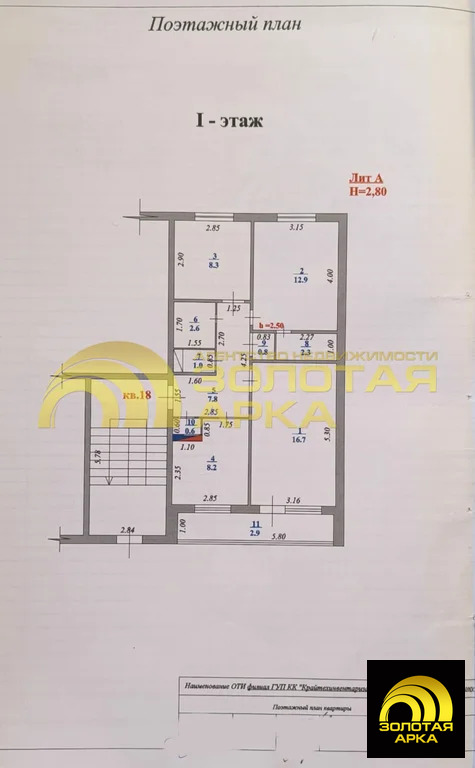 Продаётся 3-комнатная квартира, расположенная на 1 этаже двухэтажного дома в самом центре станицы Полтавской.