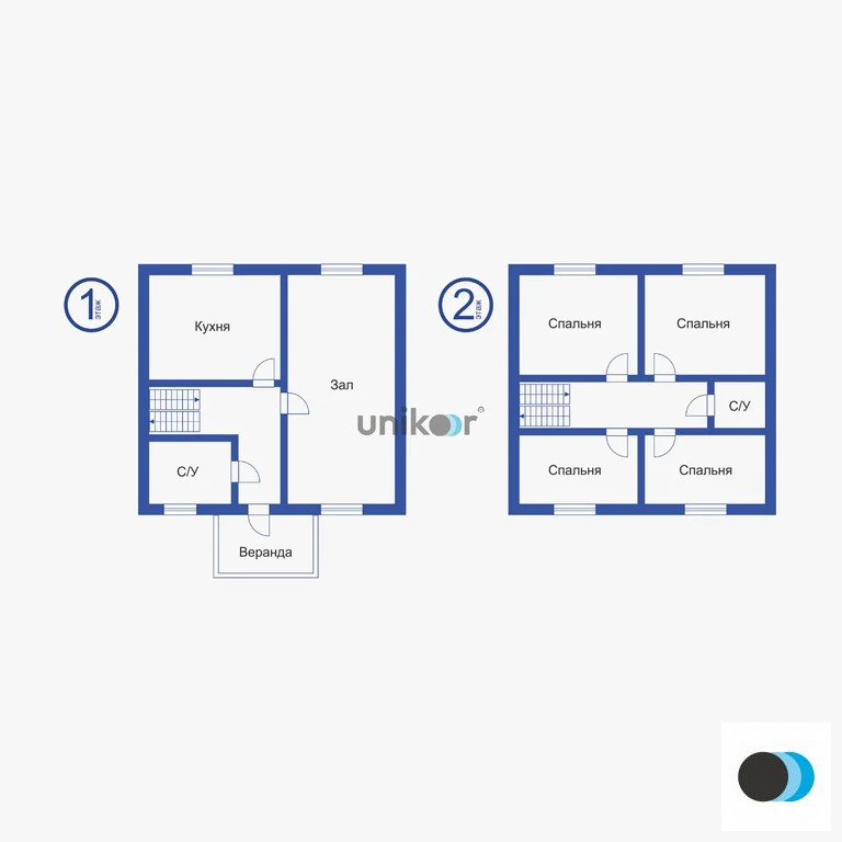 Планировка 1 этаж: Санузел, зал, 1 спальная комната, кухня.2 этаж: 4 спальные комнаты, гардеробная
