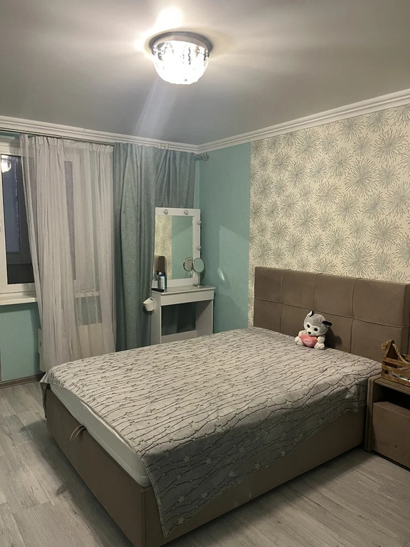 Общая площадь: 65,5 кв.м, большая кухня -16 кв.м, комнаты изолированные: 20 и 13 кв.м, две оборудованные - застекленные лоджии в квартире, раздельный санузел. Квартира - распашонка: окна комнаты и кухни выходят на одну сторону света (север) , окна второй комнаты - на другую (юг), продуваемая. Квартира в хорошем состоянии, ремонт делался в 2017 году: заменены трубы, натяжные потолки во всей квартире. На полу плитка - в кухне, коридоре, с/у; в комнатах - ламинат.