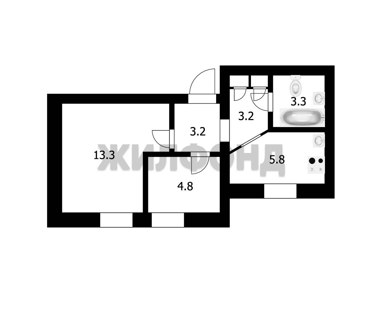 2 комн. квартира по ул. Станционная. Общей площадью: 33.60 кв.м.