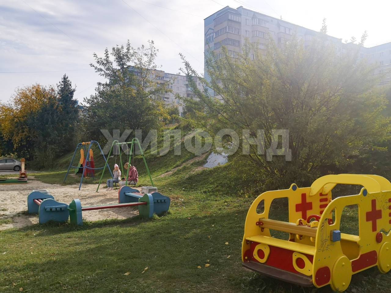 Окна на 2 стороны - во двор ( на детскую площадку) и на школу, которая располагается сразу за домом. В квартире отличный микроклимат. Вокруг очень много зелени, здесь проживание вашей семьи будет безопасным и комфортным.