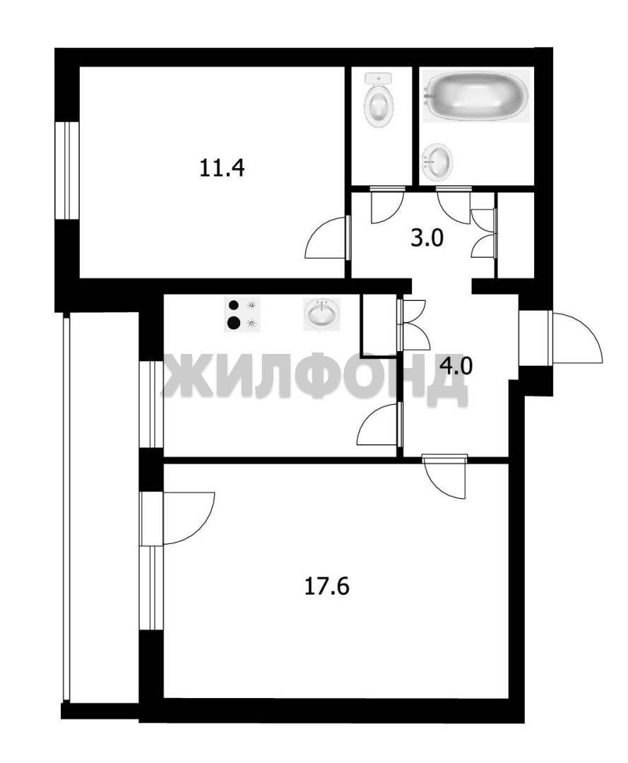2 комн. квартира по ул. Кропоткина. Общей площадью: 48.70 кв.м.