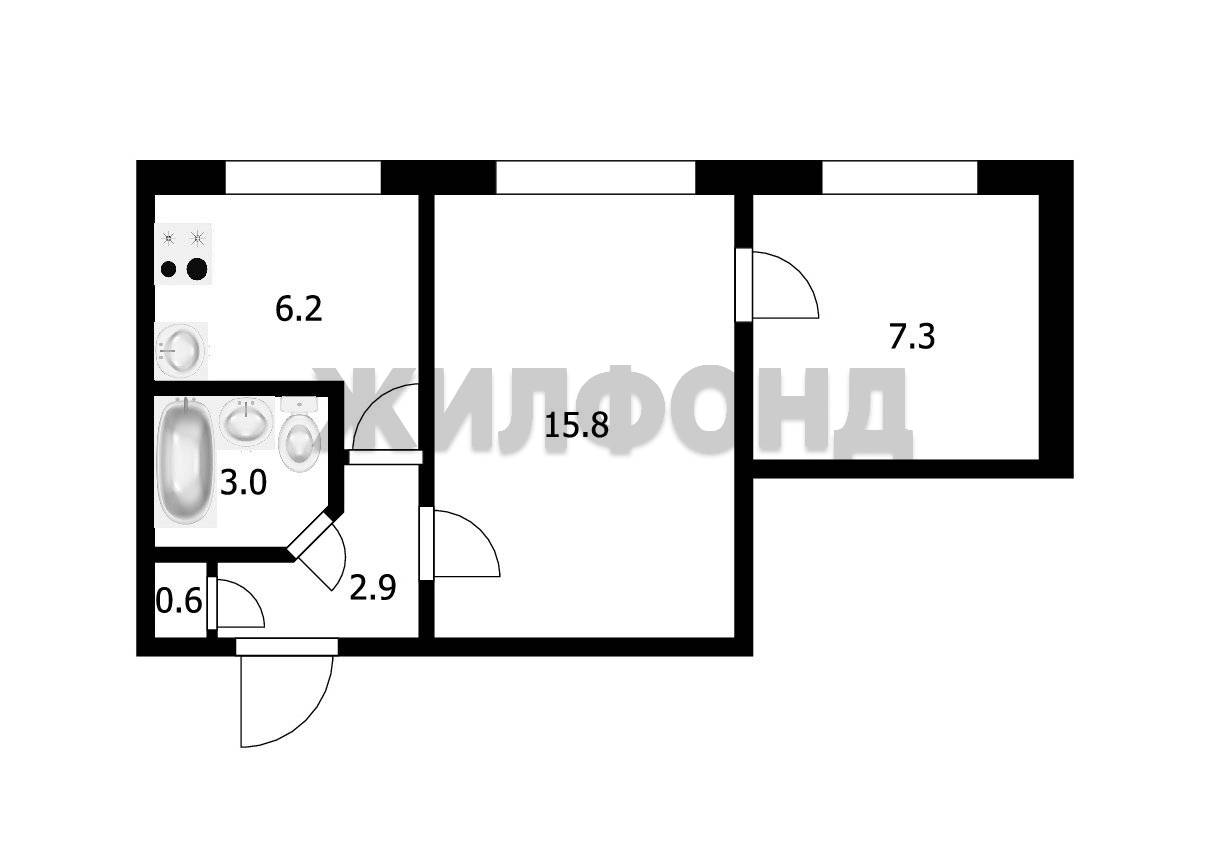 2 комн. квартира по ул. ЖКО аэропорта. Общей площадью: 35.80 кв.м.