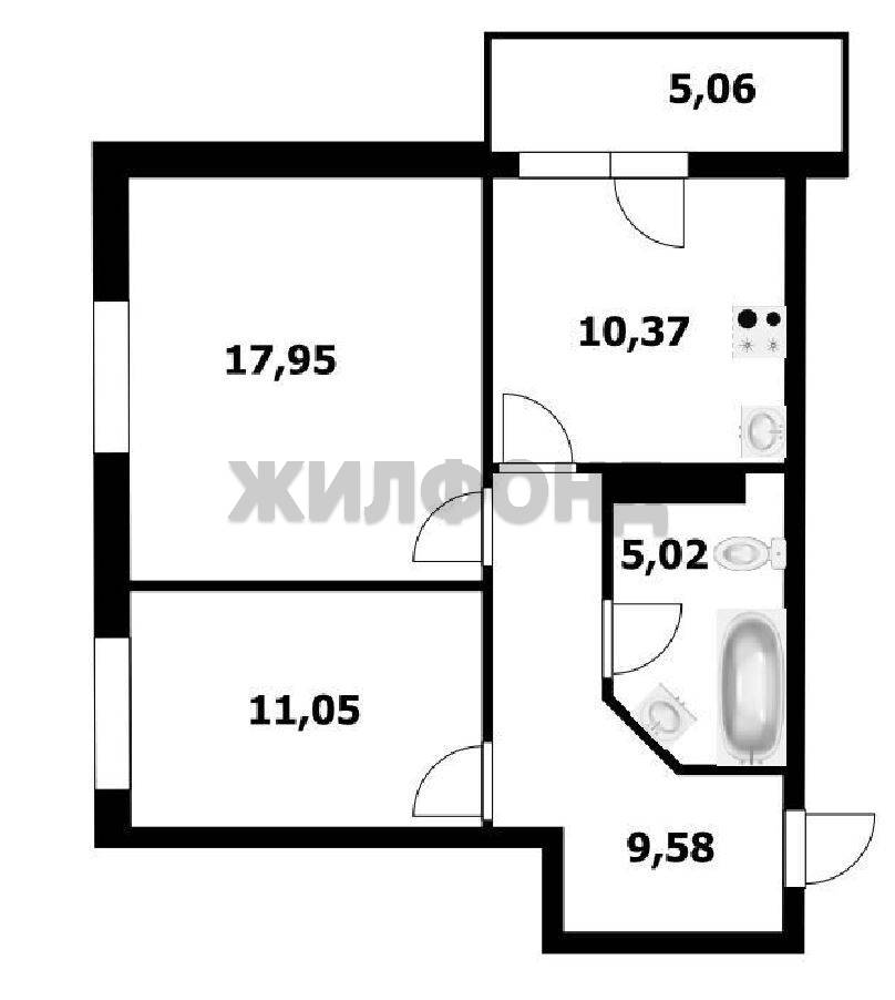 Полноценная двухкомнатная квартира 54.3 кв.м (площадь указана без учета 5-ти метрового остекленного балкона) .