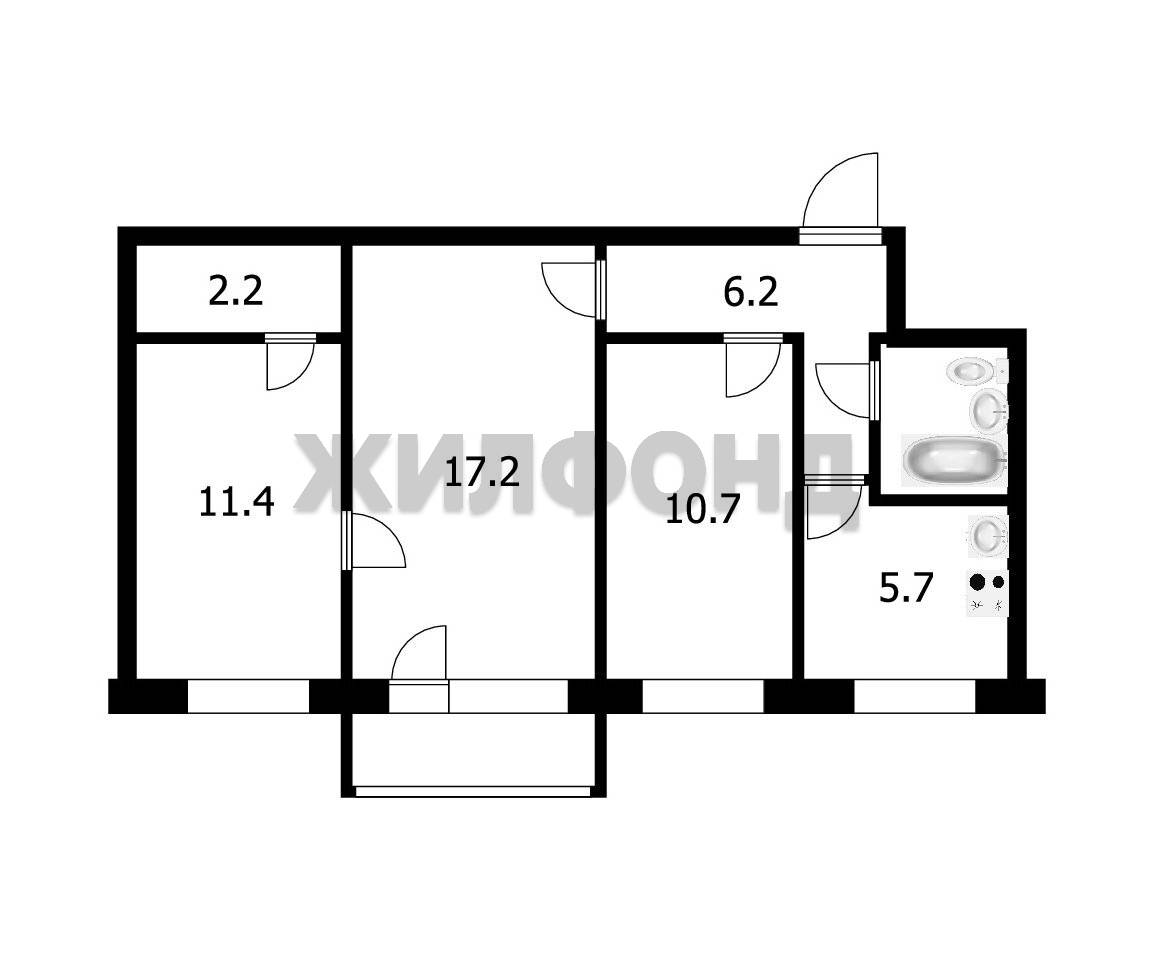 3 комн. квартира по ул. Оловозаводская. Общей площадью: 56.20 кв.м.