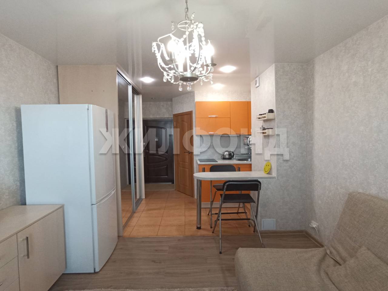 Уютная КВАРТИРА-студия. Сделан ОТЛИЧНЫЙ РЕМОНТ: на полу в зоне кухни и прихожей- керамогранит, в зоне гостиной- ламинат. Натяжной потолок с встроенными светильниками. Имеется встроенная кухня и большой шкаф- купе. Совмещённый санузел. Балкон утеплен и обшит вагонкой, застеклен пластиковыми окнами, на полу уложен ковролин. В подъезде сделан косметический ремонт. Шикарная инфраструктура: возле дома новый бассейн, крытый каток Ледовая арена, стадион с беговыми дорожками, спортивные комплексы, супермаркеты, поликлиники, школы, детские сады, кинотеатр и парк с аттракционами для детей.